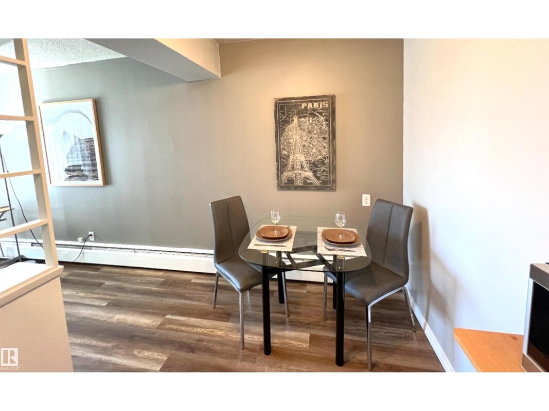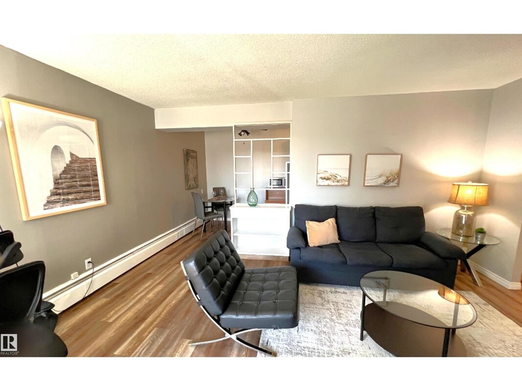 Amazing Location and River Valley View from your 2nd floor balcony in the heart of Edmonton on Jasper Av just blocks from Ada Boulevard, Borden Park and the Stadium. This is perfect for a first time buyer, someone looking to downsize or as a very desirable rental just 7 minutes to the Ice District and Downtown in an area seeing major renewal and development. Many recent upgrades in this functional and open floor plan unit include paint, flooring and countertops. This is move in ready, well kept and fully furnished if the buyer wants! Quiet and well maintained building, all utilities included in fees, comfort and convenience in this ideal retreat. Don't miss the opportunity to own a home that offers location, views and lifestyle! Pictures are from before last tenant (May 2025). (id:36536)