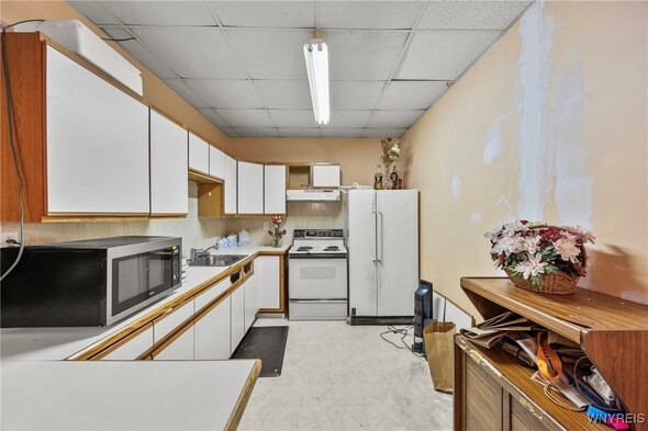 Seller motivated! Welcome to 2280 Main St. Buffalo NY 14214, this location is so close to everything! The Buffalo Zoo, Delaware Park, Canisius College, Sisters Hospital etc. This Property has been family owned for around 40 years and is zoned Residential with commercial use. This vacant money maker is ready to collect income and/or run your business here. Features include 3 residential apartments and an office/storefront. Enter on the first floor to a reception area and 2 large offices with beautiful woodwork, painted glass windows, high ceilings and some new updates throughout. There are Separate entrances to the apartments. First floor rear apt features 3 beds, 1 bath updated with new vinyl flooring. Second floor rear apt has 3 beds, 1 bath updated with newer vinyl flooring and carpet. Beautiful wood cabinets and cabinets left for the owner. Second floor front has a one bedroom, open floor plan with a beautiful large bath, hardwood floors and beautiful woodwork. The attic is full and can be finished for more space. Full dry, solid basement, has laundry room, storage, new 85 gallon hot water tank, new high efficiency furnace. There are 2 meters, gas and electric. A Brand New roof. Huge shared driveway and lots of parking in the rear. Three car garage included for more space. Properties like this do not come on the market often, run don't walk to see the many possibilities this has to offer.