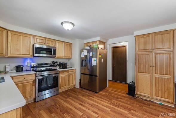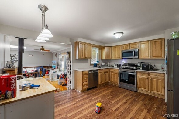 Welcome to 412 Belmont Ct E, a spacious 3 bedroom, 2 full bath Ranch with great curb appeal. The roomy foyer leads to a sunlit living room with large picture windows, formal dining room and large eat-in kitchen. Kitchen has loads of cupboard space and stainless steel appliances. From the kitchen, step into the family room complete with wood burning stove and sliding glass door leading to the patio and fully fenced yard. (No rear neighbors!) Primary bedroom includes a private full bath and double closets. 2 car attached garage, large dry basement with bonus rec room and central air complete this home. This great ranch has loads of potential and is just waiting to welcome you home!