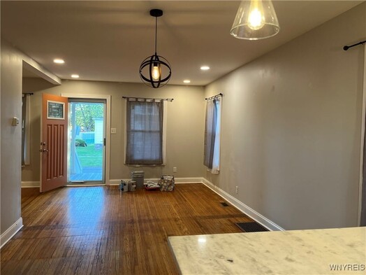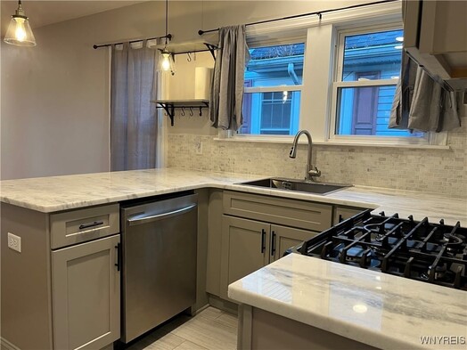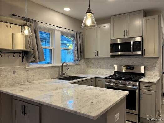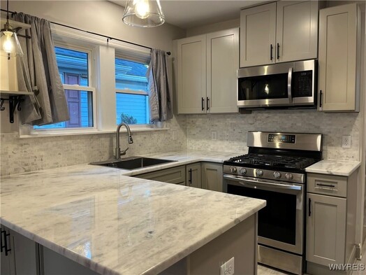 Move right into this charming home that was renovated in 2021. Youll love the fresh kitchen featuring marble countertops, newer cabinets, and beautiful stainless steel kitchen appliances. Updates also include the furnace, hot water tank and some electrical. Youll love the fully fenced yard with a storage shed. Check out the welcoming large front covered porch to relax on. Shared driveway. Glass block windows in your full basement. Some built in drawers in the upstairs bedrooms for convenience. The 2 upper bedrooms are walk through. Current owners always used the adjacent public parking for 3 vehicles and found it very accommodating.
