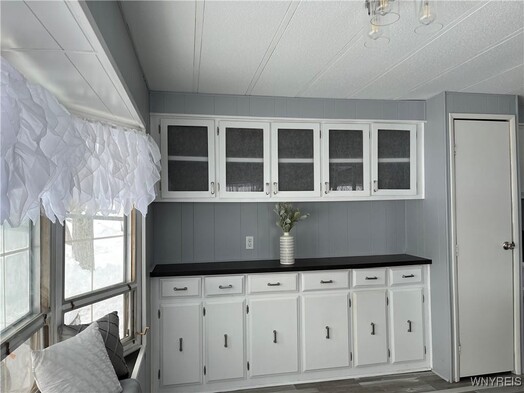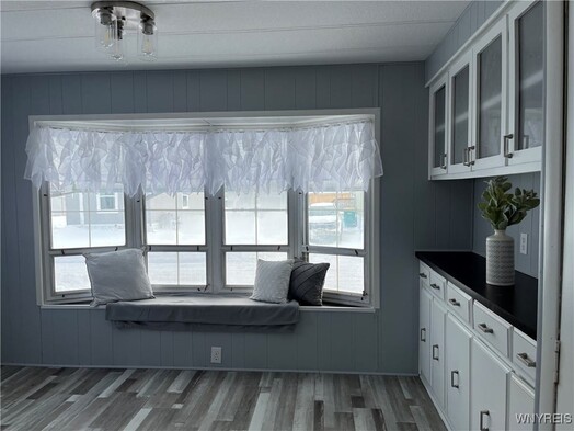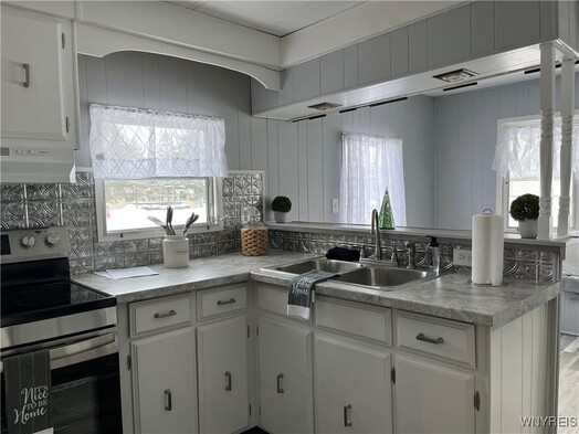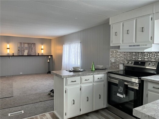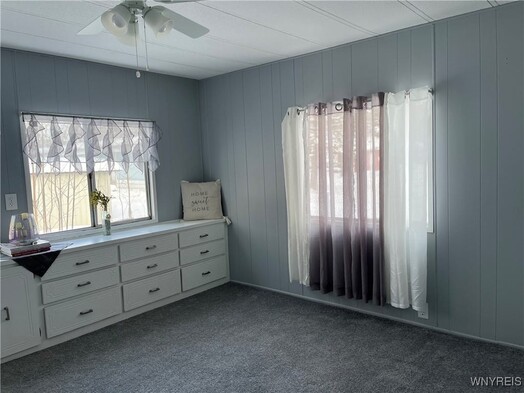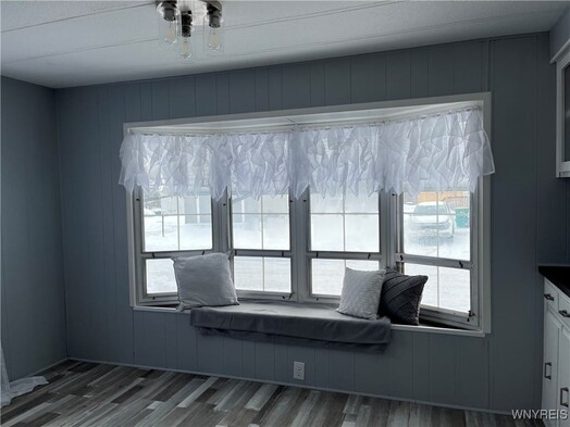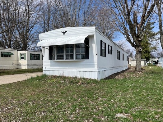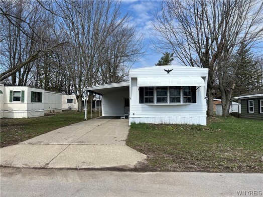 Charming 2 bedroom home beautifully updated. This adorable 2 bedroom, 1 bath home has 980 sq ft of thoughtfully updated living space. Tasteful updates shine throughout, creating a cozy yet modern feel you'll fall in love with. Plenty of white cabinets in the kitchen and dining area. New electric stove and refrigerator. Enjoy the versatile carport/patio- perfect for relaxing or entertaining-plus a shed and additional storage area for all your extras. Major updates done Fall of 2025 include furnace and hot water tank, along with a durable recoating of the tar and gravel roof. This is all in Akron's Premier 40+ manufactured home community, Quarry Hill Estates. You will love the community clubhouse, planned community activities, and a pond with walking trail for your enjoyment.