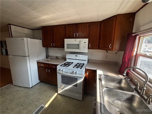 Seller will entertain offers between $10,000 - $80,000. MOTIVATED SELLER! Welcome to your new cozy retreat! This beautifully updated 2 bedroom 1 bath single wide home boasts a new 10x10 inviting deck, perfect for morning coffee or evening gatherings. Step inside to discover a spacious living room and a bright kitchen, ideal for entertaining! Need flexibility? This home features an additional finished flex room that can be tailored to your needs a sun room, craft room, or play area! Enjoy peace of mind with an updated rubber membrane roof (replaced in 2017) and added insulation throughout for comfort year-round. The bathroom is designed with accessibility in mind, featuring a handicap-accessible shower. Recent updates include a 2018 high-efficiency furnace and central air to keep you comfortable in any season, along with brand-new hot water tank and updated appliances. Perfect for car enthusiasts, this property includes a 2-car garage with a carport, offering up to 5 potential parking spaces. Dont miss your chance to make this lovely home yours and enjoy all the comforts it offers! Offers will be reviewed November 19th at 3pm.