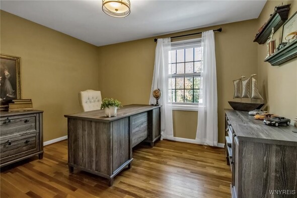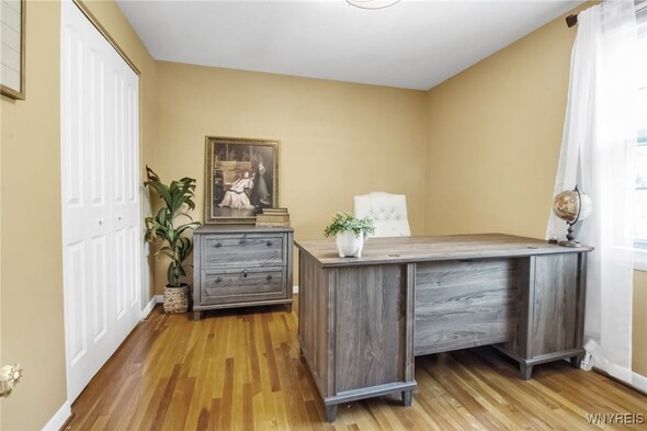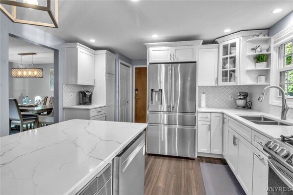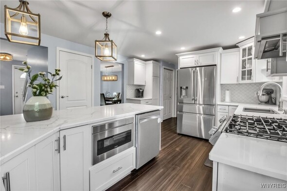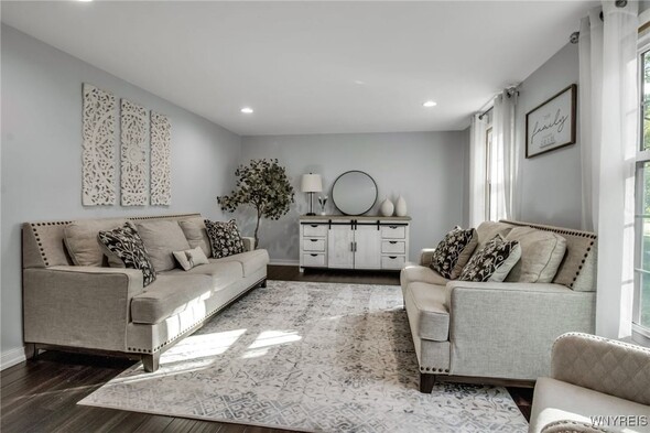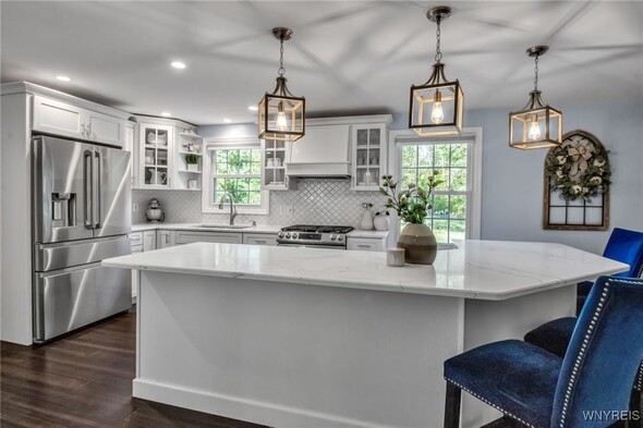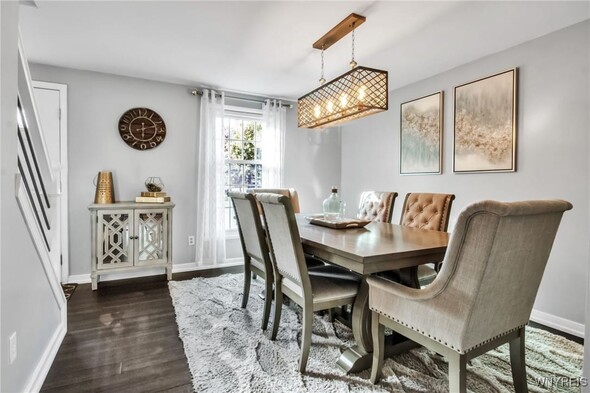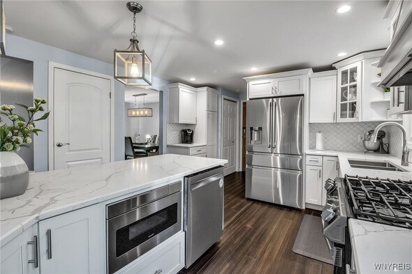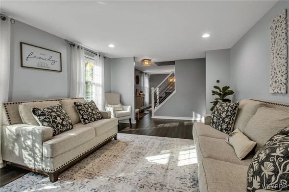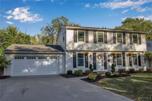 Discover your dream home in Amherst's coveted Sweet Home School District! This stunning 5-bedroom, 2-story residence features a remodeled kitchen (2019) with quartz countertops and a spacious island, perfect for entertaining. All new appliances which are also included. Enjoy the convenience of a remodeled half bath on the first floor and an attached 2-car garage. Formal living room and dining room are great for gatherings! Family room offers a cozy wood burning fireplace, with a sliding door that leads you out to the deck. Upstairs, find five generously sized bedrooms and a fully renovated main bath. The home boasts modern comforts with updated furnace and AC (2019) and newer windows. Step outside to your fully fenced yard with an in-ground heated pool and a large deck, ideal for summer gatherings. With a double-wide concrete driveway and a finished basement that includes a dedicated laundry space, this home checks all the boxes! Don't miss out! Delayed negotiations until 10/15 at 4:00pm.