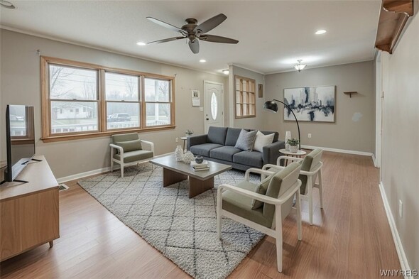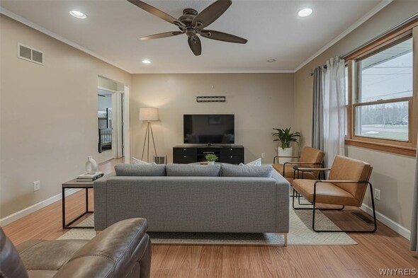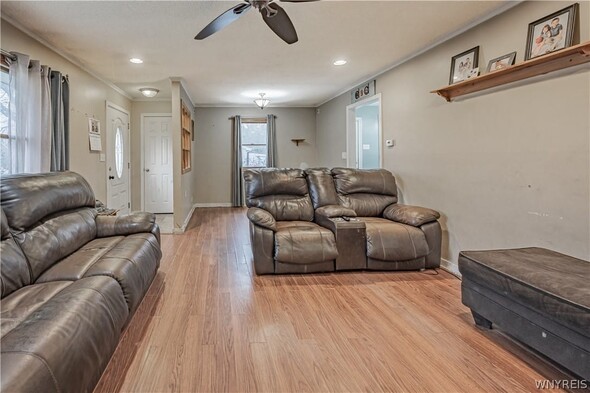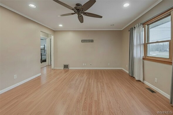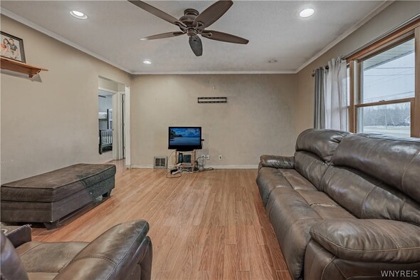 Charming 3 bedroom ranch situated on a spacious .69 acre lot, offering plenty of room to enjoy both indoor and outdoor living. The home features a large welcoming front porch. The fully fenced yard provides privacy and space for entertaining, complete with a stamped concrete patio, and an above ground pool for summer enjoyment. A 32x24 pole barn offers excellent storage or workshop potential. Inside, the home includes a full partially finished basement, providing additional living space or room for hobbies. Furnace, central AC and HWT are all updated. With some cosmetic TLC, this property has incredible potential to become your dream home. Dont miss this opportunity to own a great property with space, amenities, and possibilities.