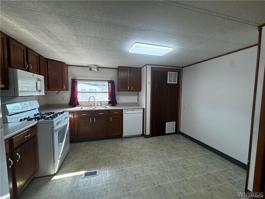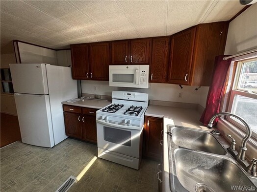 Welcome to your charming and move-in ready retreat! This beautifully updated 2-bedroom, 1-bath single-wide home offers comfort, functionality, and thoughtful upgrades throughout. Step outside onto the inviting 10x10 deckperfect for enjoying your morning coffee or relaxing in the evening. Inside, youll find a spacious living room and a bright kitchen that creates a warm and welcoming atmosphere. The home also features an additional finished flex room that can easily serve as a sunroom, craft room, office, or play area to suit your needs. Recent improvements include an updated rubber membrane roof, added insulation for year-round comfort, a high-efficiency furnace and AC, hot water tank, and updated appliances. The bathroom includes a handicap-accessible shower for added convenience. Car enthusiasts and hobbyists will appreciate the 2-car garage with an attached carport, offering potential parking for up to five vehicles. The current lot rent is $500 per month and includes un-metered water. Residents also enjoy access to a community pool, perfect for cooling off on warm summer days. Buyers must receive park approval prior to purchase. Dont miss the opportunity to make this well-maintained home your own!