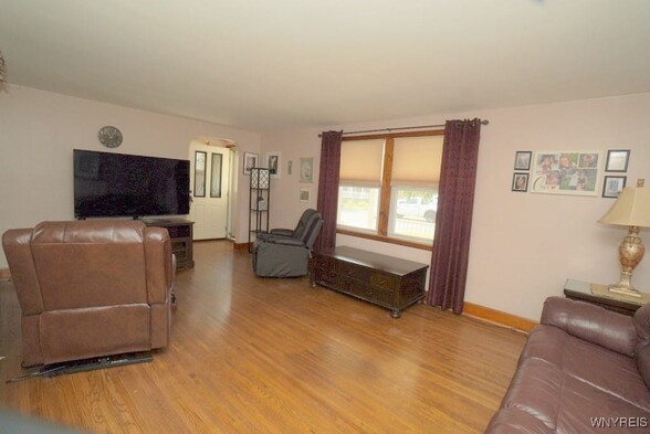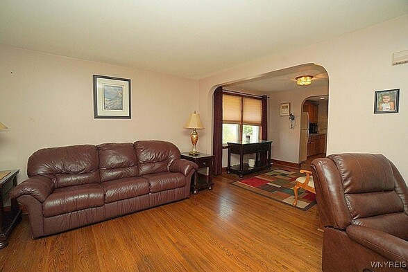 Welcome to a well-maintained ranch home located in a high-demand area, close to the thruway and with many amenities nearby. This Home is a testament to his diligent care. The owner took so much pride in his home. The dining area opens to the kitchen that offers plenty of cabinetry for storage along witha pantry off to the side. This charming 2 bedroom home features a large covered front porch with great curb appeal. This home features newer siding, glass block windows and roof. Inside the layout is practical and inviting, while outside you'll find a fully fenced backyard ideal for entertaining, pets or play. A two-car garage adds convenience and ample storage, making this well-maintained ranch a wonderful place to call HOME! The two bedrooms have walk-in closets with beautiful Hardwood floors. The basement has a ton of storage space. This Home is looking for its new owner. Dont let this one pass you by! So affordable!