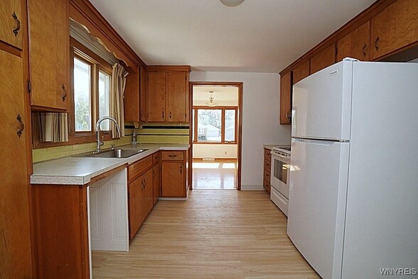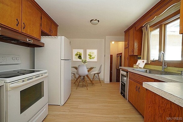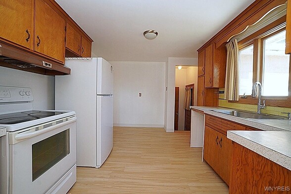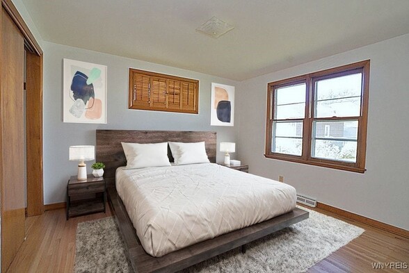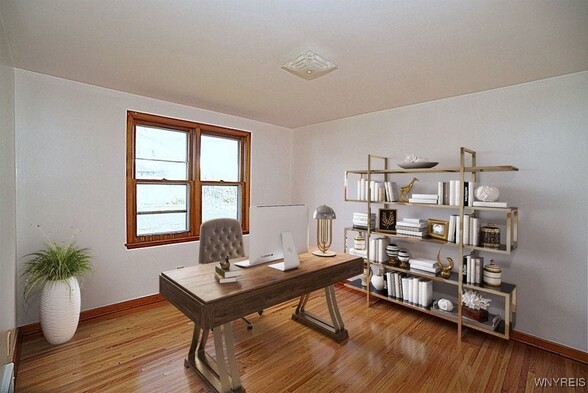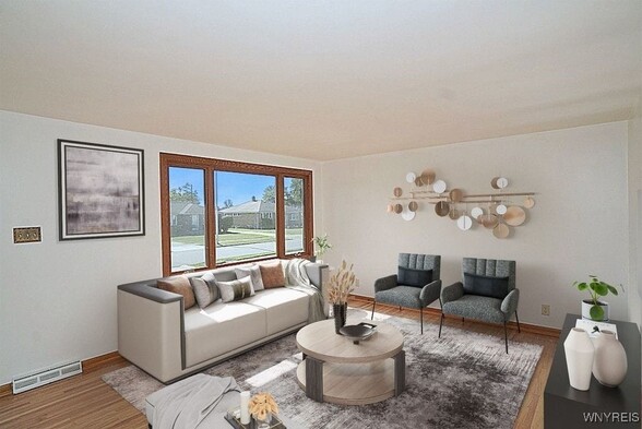 This ranch has good bones - brick on all sides, gorgeous hardwood floors, plenty of storage. The full bath has been beautifully updated (2025). Bringing home groceries doesn't get easier - the attached garage enters by the kitchen. All three bedrooms are spacious with ample closet room. There is a newer furnace and the front windows have been updated. There is a concrete patio and partially fenced yard. Conveniently located off Harlem Rd. not far from the 33.