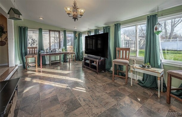 Located in a quiet and established neighborhood, this split-level, 3 bed, 1.5 bath home is a uniquetreasure. Upon entry youll find a large and cozy living room as well as an updated kitchen with stainless steel appliances, trendy lighting, sleek countertops and ample cabinetry. The heated sunroom addsadditional living space and provides so much natural light, itll quickly become your favorite room in thehouse. The sunroom also provides access to the fully fenced backyard which will be great for entertaining. Upstairs youll find 3 bedrooms and a full bathroom. Downstairs youll find a family room with a wood-burning stove, a flex space, utility/laundry room and a half bath along with access to the 2.5 car garage. Well-maintained mechanics. This charming home just needs a few minor updates to make it your dream home. Sold as is. Showings start Tuesday, Nov 25th at 3pm. Offers due December 4th by noon.