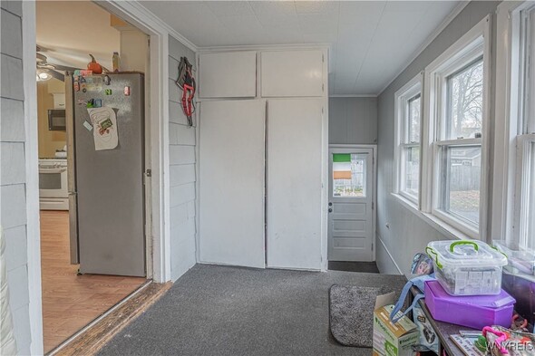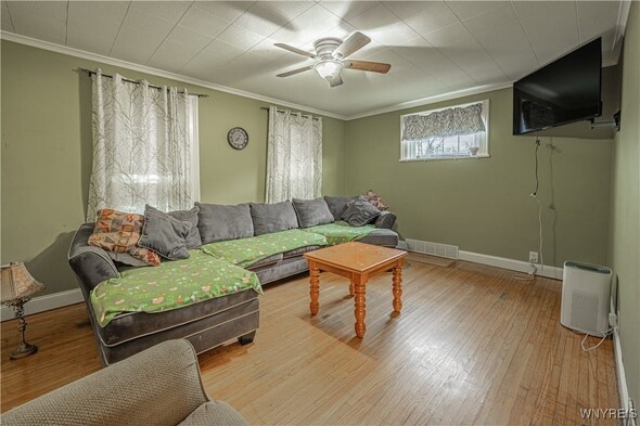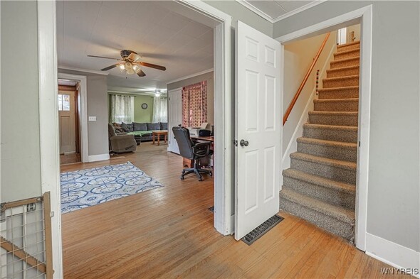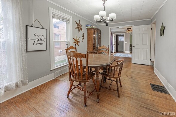 Charming 3+ bedroom home in the heart of Lockport! This spacious 1,800+ sq ft property blends classic 1900s character with great potential to make this home shine with your personal touches. Bright living spaces, large formal dining room, spacious kitchen layout, double living rooms, 1st floor bedroom / den / office, half bath, foyer and enclosed rear porch make this home perfect for everyday living. The second floor offers three comfortable bedrooms accessed by 2 separate staircases for private sleeping quarters and a full bath. Outside, enjoy the wrap around covered front porch, back yard with full fenced play area, large side yard, 2 car garage and ample off-street parking, located close to schools, shopping, parks, and all Lockport conveniences. With strong resale potential in a steadily improving neighborhood, this home is ideal for value. Bring your vision and make 160 Waterman St your next opportunitylocation, space, and charm at an attractive price! Property is sold in AS IS condition.