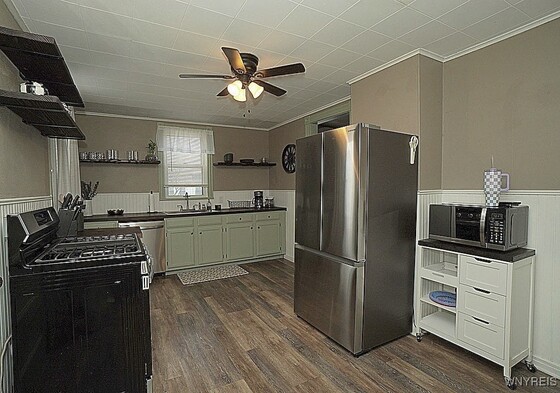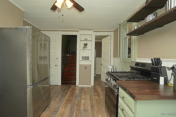 This well-maintained home offers spacious living areas, including four bedrooms, two full bathrooms, and a full walk-up attic. Conveniently located within walking distance of downtown Batavia, the property blends historic charmhighlighted by its beautiful leaded-glass windowswith numerous modern updates. This home seamlessly combines classic character with thoughtful, up-to-date enhancements. New fence (2024), Boiler replacement (2023), All new appliances (2023), Interior painting (2025), Stairway renovation (2025), New garage door (2024), Replacement of water lines and water main (2025), New front porch stairs (2025), Updated laundry room (2024), and New attic stairs (2024).