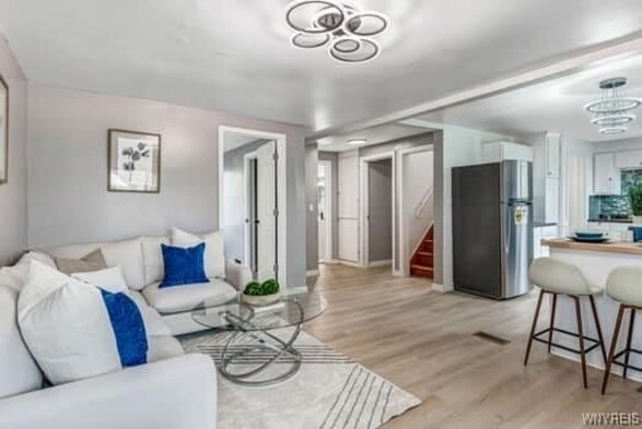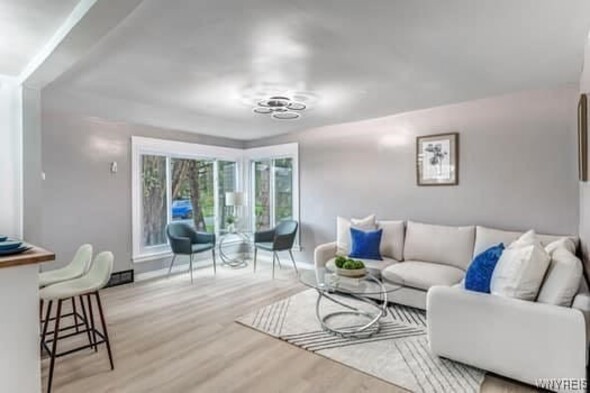 Welcome to 296 Burke Drive, a fully renovated and meticulously maintained single-family residence situated in the desirable Cleveland Hill School District in Cheektowaga. This move-in-ready home features three comfortable bedrooms, a spacious living room, an updated kitchen with a dining area, and 1.5 beautifully updated bathrooms. Recent updates include new flooring and fresh paint throughout, a new roof installed three years ago, a renovated kitchen, and tiled bathrooms. Additionally, a new hot water tank and gas heating system were both installed in 2025, ensuring modern comfort and efficiency. The property also boasts a fully heated sunroom and a full basement with abundant natural light. The exterior offers a long driveway, a one-car garage, and a generously sized, fully fenced backyard, ideal for relaxation or recreation. Conveniently located, all essential amenities, including markets, restaurants, and highway access, are less than two miles away. I invite you to explore this exceptional property, which truly has the potential to be your dream home. Square footage is different then public record per owner.