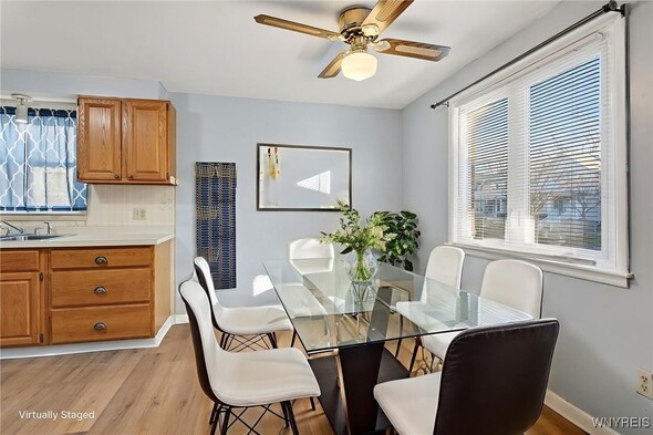 Welcome to 116 Springville Ave, a highly desirable home located in the Amherst School District. This meticulously maintained residence features three comfortable bedrooms, a spacious living room, a large kitchen with a dining area, and an updated full bathroom. The home has undergone numerous recent updates, including a roof installed just five years ago, renovated kitchen and bathrooms, and many other improvements you'll discover throughout. The property also includes a full basement and benefits from abundant natural light. Situated in a prime and convenient location, you'll have easy access to all nearby amenities. The exterior offers a long driveway with a 1.5-car garage and a huge backyard. The home is equipped with central air conditioning and a gas heating system. Don't miss the opportunity to explore this exceptional property it could truly be your dream home!