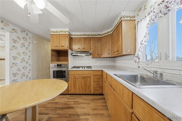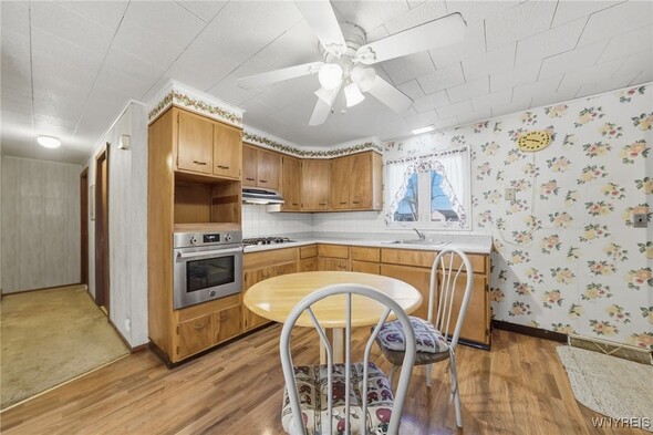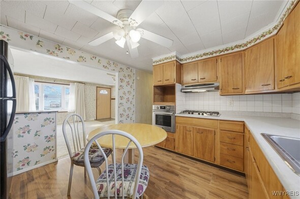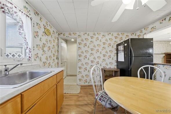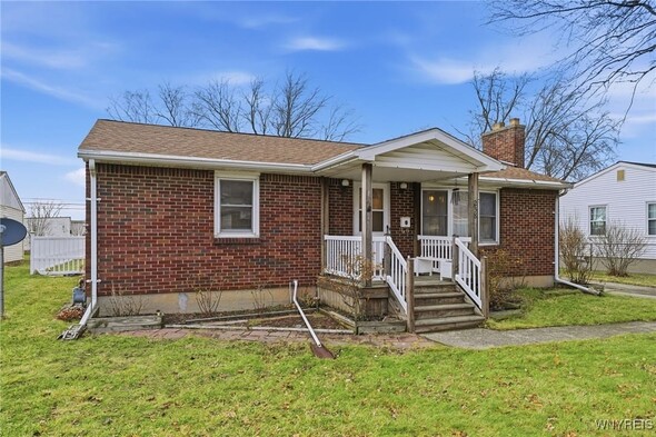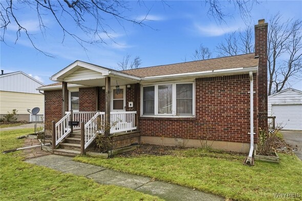 Welcome to this adorable all-brick ranch in the Town of Tonawanda, with ease-of-access to almost anywhere in the county. This home sits on an almost quarter acre lot, and features a large backyard which is fully-fenced, and a detached garage. Inside, you'll find a large living room (with fireplace), large primary bedroom and nicely-sized guest bedroom. Updates include replacement windows, newer roof, solid poured foundation with brand-new sump pump installation, and all appliances included. Move in and enjoy, or bring your aesthetic touches and make this home yours.
