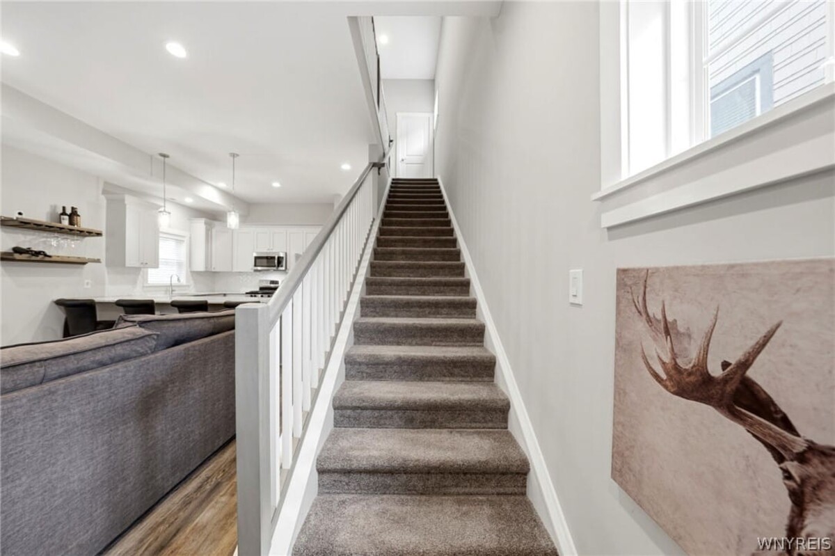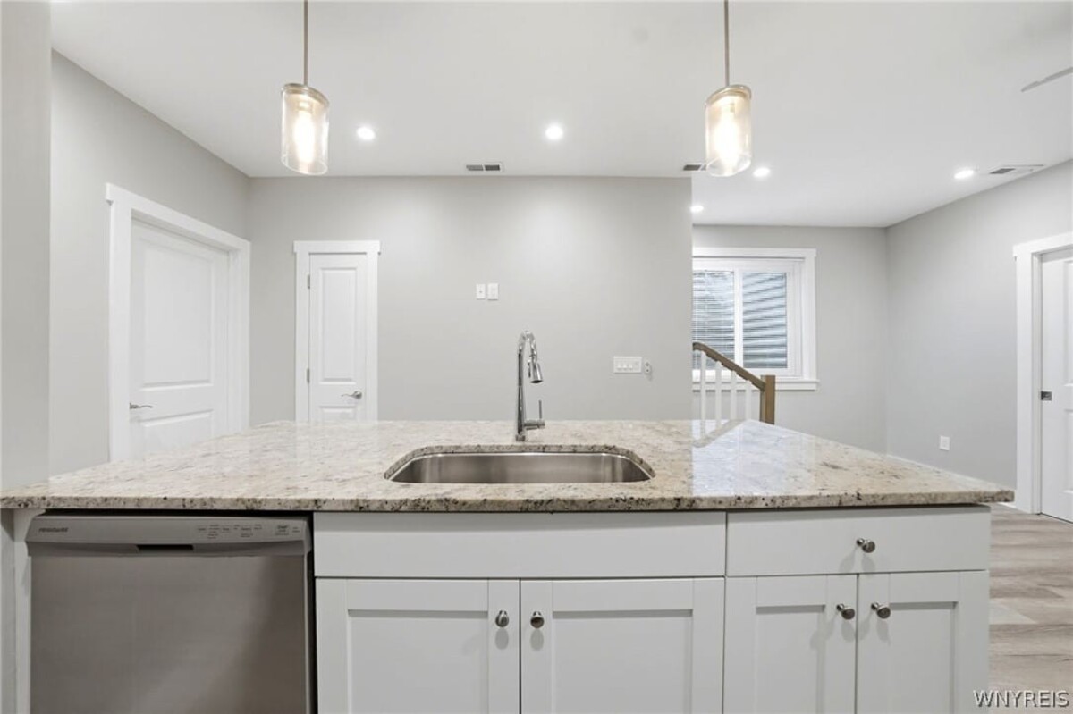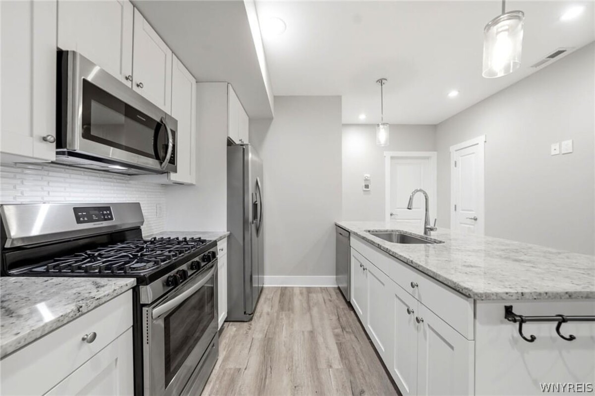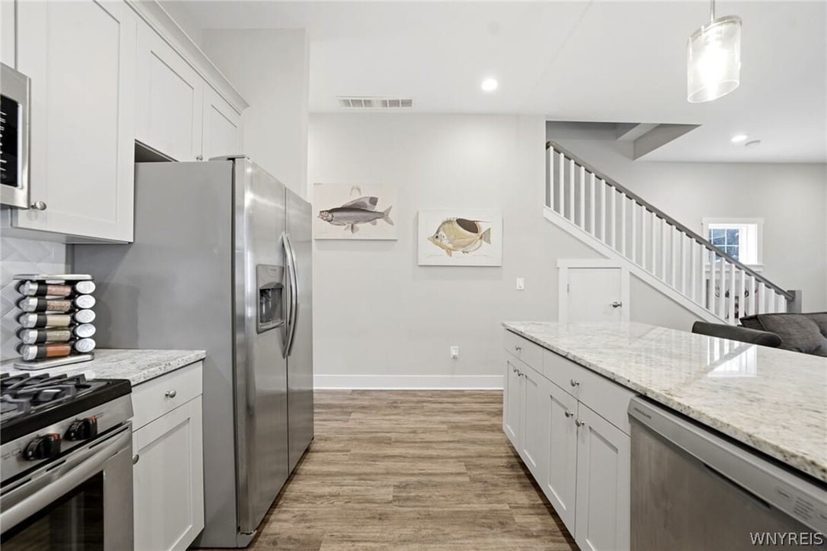 Welcome home to 32 Horton Place! Rare 2020 built home located in the Delaware District! The 1st and 2nd floor boast 10 foot ceilings with 2 beds and 1.5 baths. The main floor features a wide open concept with vinyl plank flooring. The kitchen features slow close cabinets, all appliances included, and granite counters with 10 feet of counter space for an eat in kitchen. Upstairs you will find 2 spacious bedrooms and a large bathroom with ample storage. The 17x13 primary bedroom has 2 large closets! 2nd floor laundry! The basement with 2 large egress windows has 8.5 ft ceilings and is its own separate unit that can be used as great rental income. It is a 1 bed 1 bath unit with granite counters and includes all appliances as well! Both units have Lennox AC, Lennox Furnaces, and tankless hot water. Off street parking in the back of the unit. Large 17x6 covered front porch & 12X9 covered rear porch. Vinyl siding-vinyl windows. Whole house security system. This home simply needs a new owner and nothing more. Seller reserves the right to set offer deadline date.