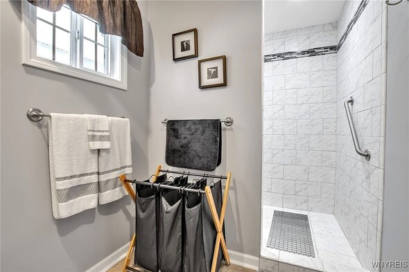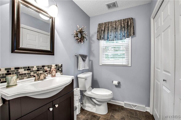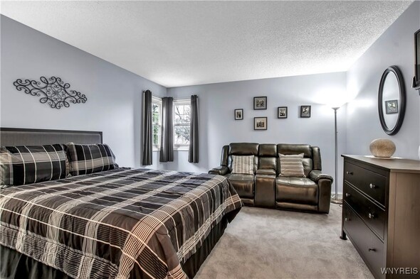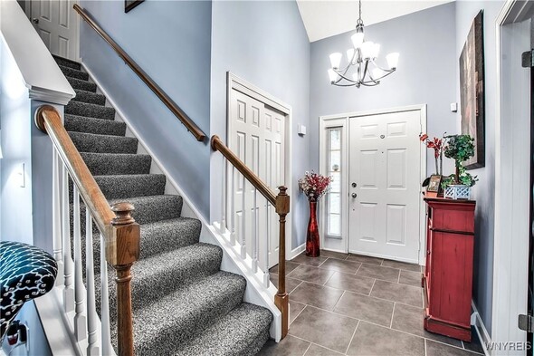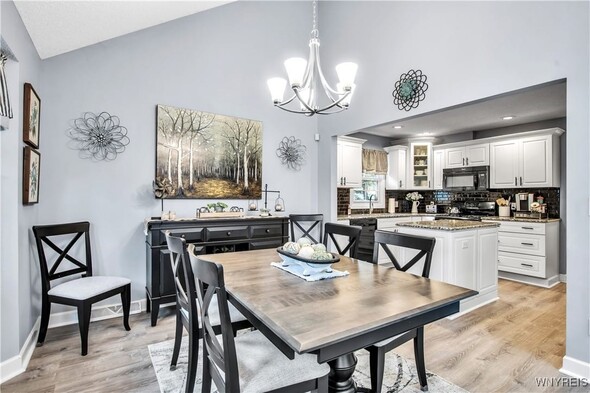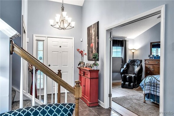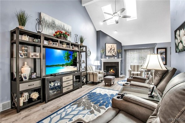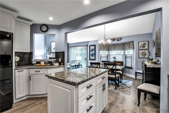 This impressive 3 bdrm 2.5 bath townhouse with low maintenance vinyl siding + attractive backyard deck w/awning has a beautiful 1st floor bedroom + full bath w/oversized shower, 'California' designed walk-in closet + spacious vanity. The Living Rm w/soaring vaulted ceiling w/2 skylights features a gas fireplace, luxury vinyl flooring + sliding door to a backyard deck w/a pretty awning. The formal Dining Rm w/bay windowed views + chandelier overlooks the bright Kitchen w/lots of sparkling white cabinetry w/granite counters, center island, built-in dishwasher + microwave, negotiable gas ov/range + refrigerator. Updated half bath w/attractive vanity + a convenient 1st floor laundry (washer + dryer negotiable). The 2nd floor includes 2 spacious carpeted bedrooms + updated full bath. The finished basement has a 35ft L shaped berber carpeted room + 16x12 berber carpeted room. Great mechanics: gas forced air furnace w/central air, hot water tank + circuit breaker box. Relax on your backyard deck w/awning or enjoy fireside views in the living room ~ this beautiful townhouse is located close to all conveniences!