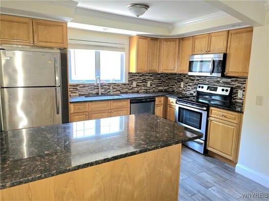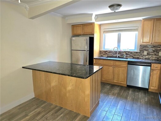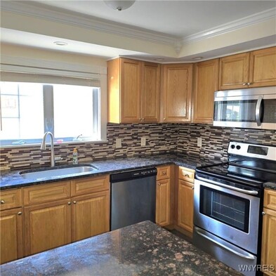All brick 4 unit with new house roof (2025), updated windows, full basement and 4 car garage! Each spacious unit consists of an eat-in kitchen with large dining area, spacious living room, 2 bedrooms and full bath. Many updates in the kitchens, including some with newer cabinets, granite countertops, and flooring. Ceramic tile bathrooms with walk-in showers. Most living rooms and bedrooms have wall to wall carpet. One living room has Pergo / laminate flooring. Plenty of storage in the full basement including a storage unit for each apartment. Coin operated laundry and glass block windows, as well as a lot of PEX plumbing and updated electric in the basement (plus each unit has its own subpanel in the unit) Concrete block 4 car garage with each door having its own opener. The tax records state 6231 for square footage. Seller believes that includes the basement