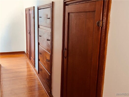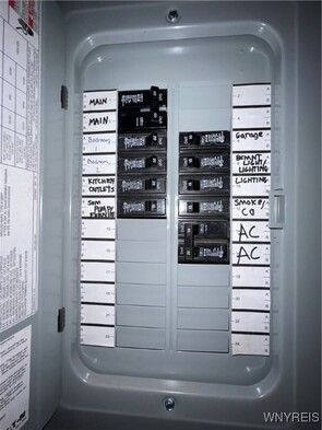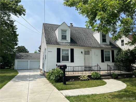 Charming Cape Cod in Prime Location! Welcome to this Sweet Cape nestled on a quiet neighborhood street with a large, inviting front porch. The main level features a spacious living room with a walk-in closet (other rm), a 1st floor bedroom, an updated full bathroom, and a kitchen equipped with 2021 Frigidaire SS Refrigerator & Stove, a ceiling fan light & windows overlooking the backyard & the two-car garage. Upstairs, you'll find two generously sized bedrooms and hallway with built-in drawers and cabinets. Most of the home features hardwood floors. Major Updates Include:2023: New Gutters routed to the Storm Drain.2021: New furnace & central air, concrete driveway, and basement waterproofing.2020: Upgraded electric service with 100-amp panel box.2018: New sewer line. The basement includes the washer & dryer and offers ample space to create a rec room too! All the big-ticket items are donejust bring your personal touch to make it your own! Centrally Located just a 10-minute drive to downtown, minutes to the Thruway or a short walk, bike to Woodlawn Beach State Park!