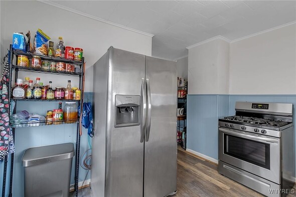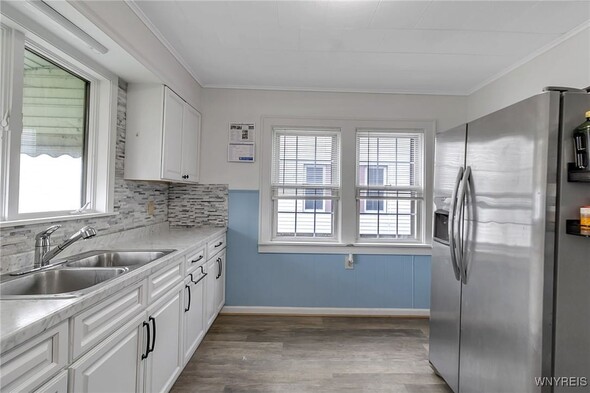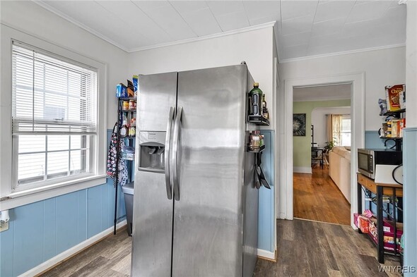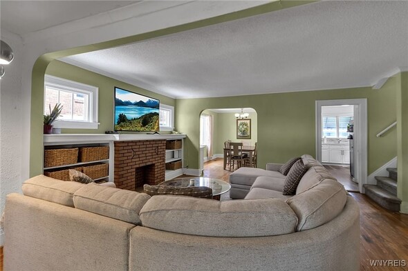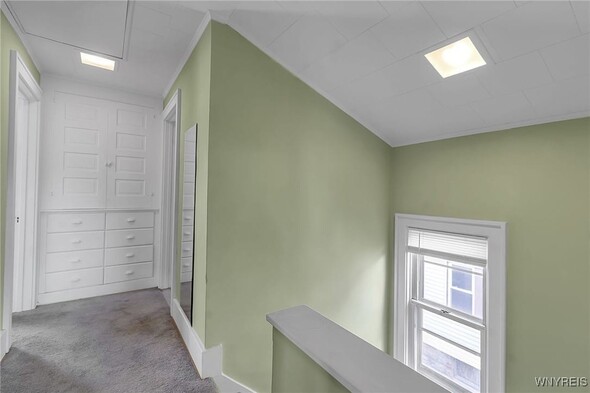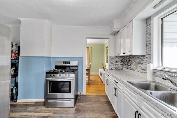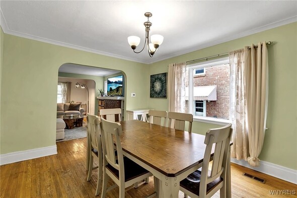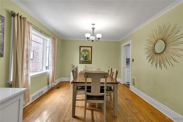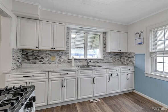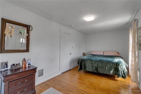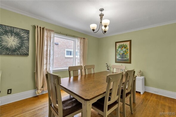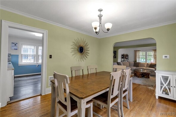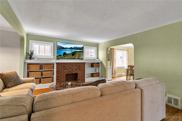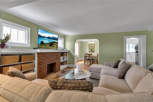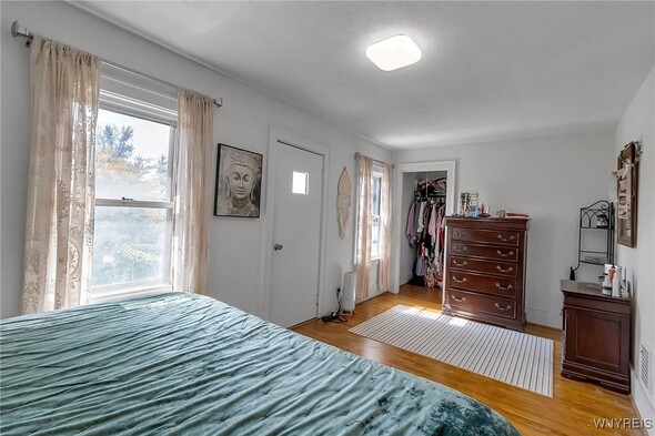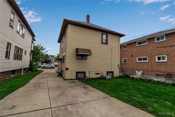 WELCOME TO 197 TREMONT! This 3 bed, 1 bath colonial is conveniently located in the heart of Kenmore! Walking distance to village, restaurants, shopping! The front foyer welcomes you into the large, spacious living room w/ hardwoods, faux fireplace w/ built-ins. Additional space is great for your home office! Formal, bright dining room is perfect for entertaining. Updated kitchen offers plenty of cupboard space and includes appliances, laminate floors! Second floor leads to 3 good sized bedrooms. Primary bedroom offers a second-floor balcony, a great spot to relax w/ a cup of coffee. All beds have hardwoods. Built-in linen closet drawers in the hallway for additional storage. Large updated bathroom! Many updates include Furnace 2024, Water tank 2020, Roof 2019, DrainTtile 2020. NEW insulation is schedule for the end of October to help with those utility bills! Amenities include Central Air, Attic w/ Pull-down stairs, glass block windows, washer/dryer included. Plenty of parking w/ concrete drive and 2 car garage. Showings start immediately!