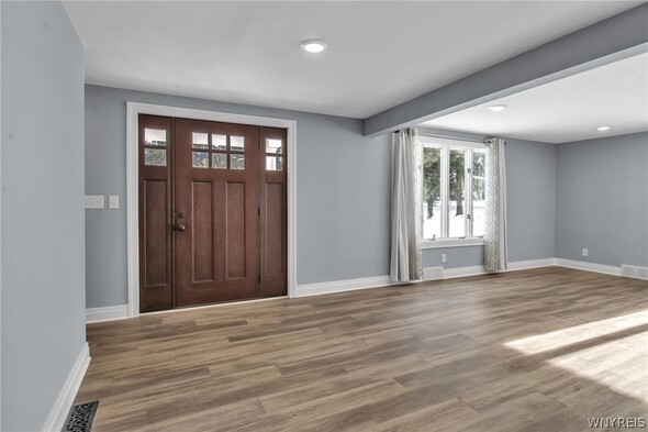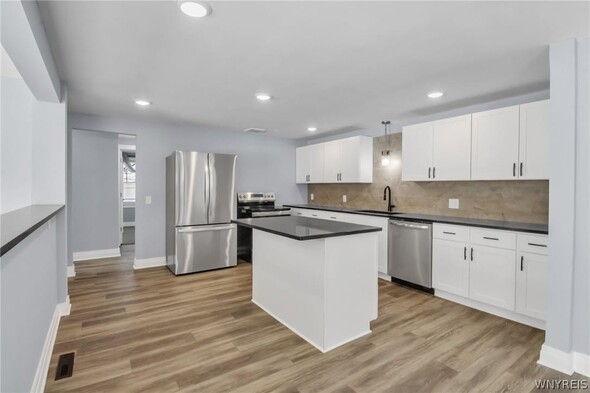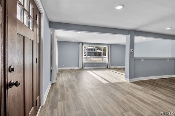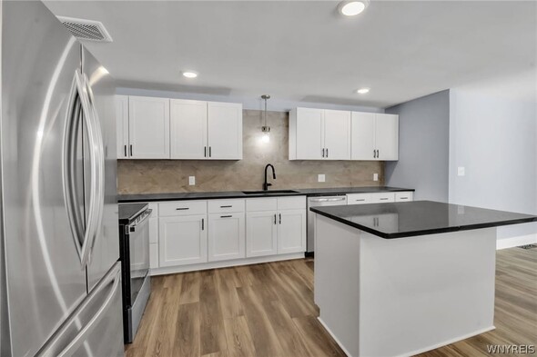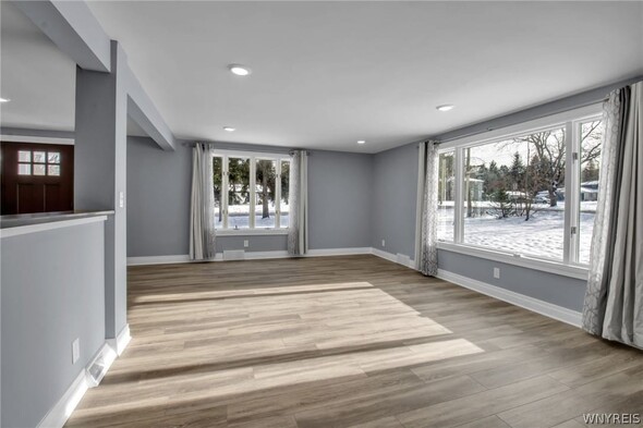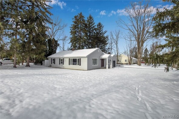 WELCOME TO 6212 NEW TAYLOR RD! Demand location walking distance to the heart of the Village of Orchard Park! This fully renovated 3 bed, 2 bath ranch is move-in ready! The gorgeous front door and covered porch welcomes you into the open floor plan. Large, bright living room w/cut out looks into the fully applianced kitchen with island, quartz counters and eating area. The private primary suite has sliding glass doors to a new patio, perfect for morning coffee! Fully tiled primary bath w/ walk-in shower. Two additional bedrooms offer huge closets! Second full bath, laundry room and mudroom complete this convenient floor plan. Full basement is ready for your finishing touches for additional living space. Extra-large lot has many options for outdoor living! Generator offers peace of mind year round! Updates in 2024/2025 include: New Tear-off Roof (24), gutters & guards (24), HVAC & Water Tank (24), Kitchen, 2 Baths, Lighting, Concrete Driveway, Porch & Patio, Flooring & Carpet, Stove & Fridge all 2025! Showings begin Saturday, February 14th @ 9am.