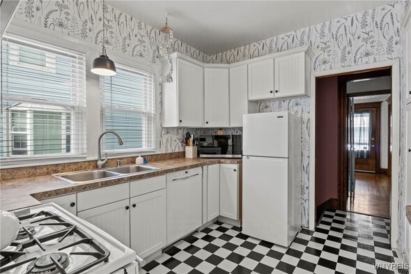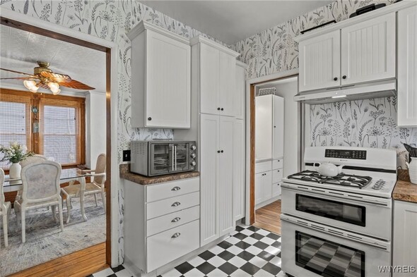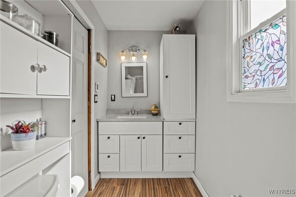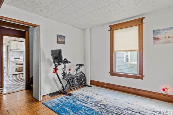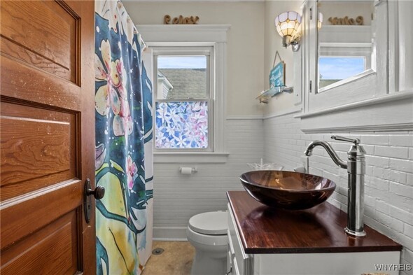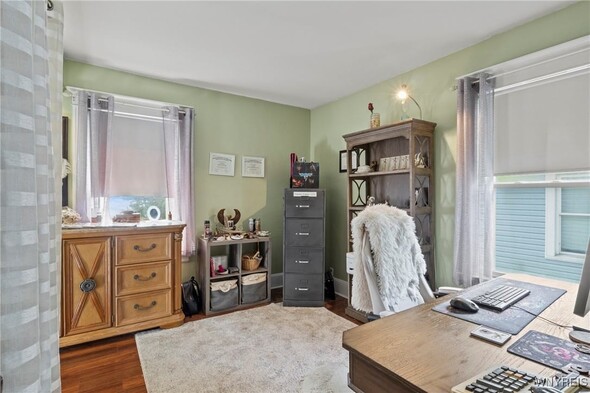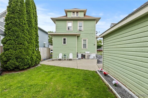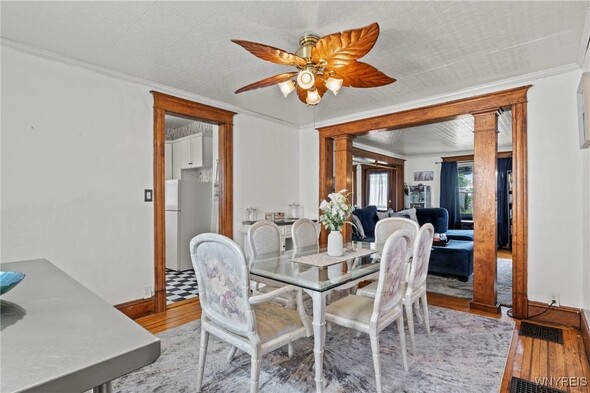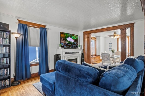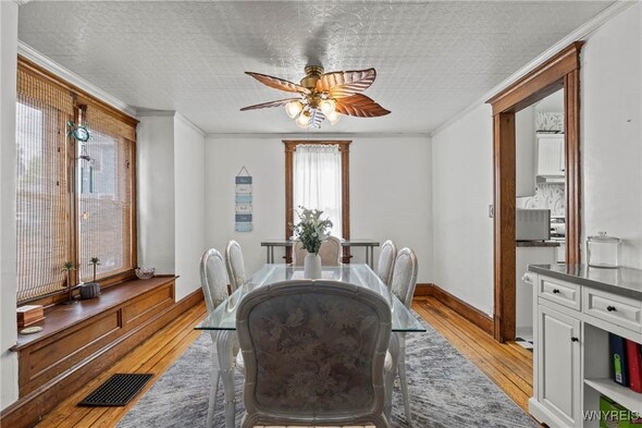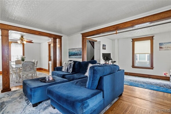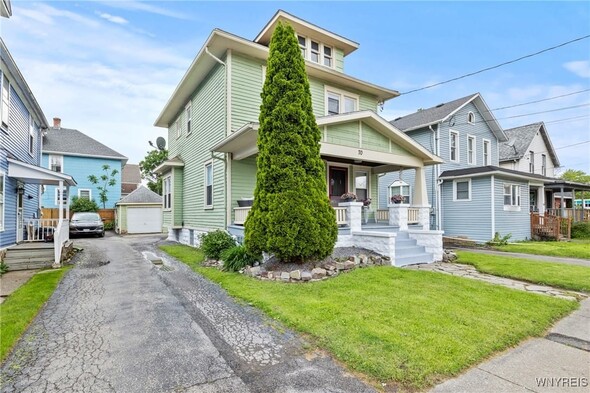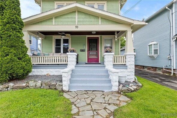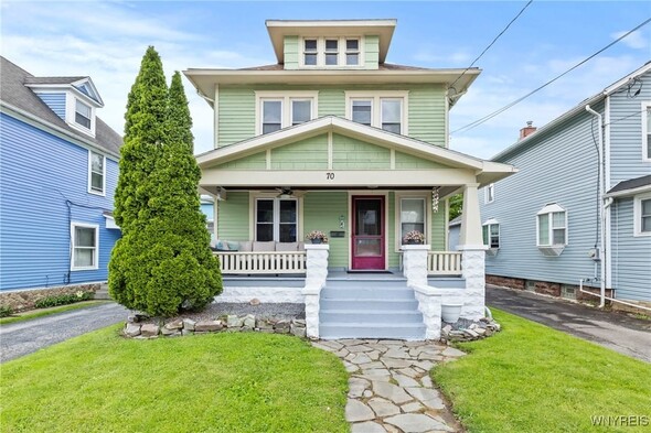 70 Seymour Street blends historic charm with modern updates in a prime Tonawanda locationjust moments from Niawanda Park, scenic waterfront trails, beloved local restaurants, shops, and year-round community events. This spacious and thoughtfully updated home offers the perfect mix of character and comfort. A classic front porch, custom flower box, and tidy landscaping create a warm welcome. Plenty of extra off-street parking for multiple vehicles! Inside, youll find original woodwork, solid wood doors, built-ins, and gleaming hardwood floors on the first floor that reflect the homes timeless appeal. The main level includes a bright and spacious living room, formal dining room, an updated kitchen with plenty of cabinet space (all appliances includedbonus two refrigerators, one brand new!), and a charming front bonus room just off the foyer. A beautifully remodeled full bathroom with a waterfall shower and heated floors adds luxury and convenience. Upstairs features four bedroomstwo combined to create a spacious primary retreatand a second full bath with a well-preserved original clawfoot soaking tub. All bedroom closets have been redone for modern function. The full walk-up attic has been newly insulated (2025) and offers potential for future finished spaceideal for a studio, office, or bonus room. The basement is partially finished with refinished concrete walls, waterproofing, a new floor, glass block windows, and a 2024 hot water heater, making it perfect for a gym, workshop, or rec area. Additional updates include updated electrical, newer windows, and a 4-year-old architectural roof. The backyard is partially fenced and includes a one-car garage plus ample parking for two additional cars in the driveway and one more directly in front of the home!