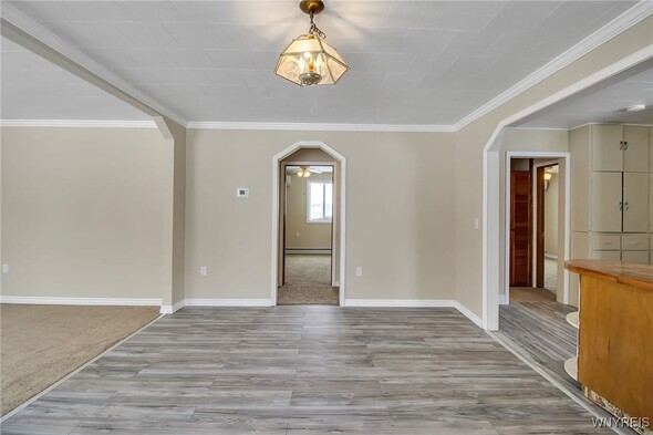 Beautifully remodeled 3-bedroom, 1.5-bath ranch in the Starpoint School District, set on a flat and private one-acre lot with serene country views. This move-in-ready home features brand-new luxury vinyl flooring, new carpet, new cabinetry with granite countertops, and updated finishes throughout. Sun-filled living spaces include a formal dining area and a living room with two bay windows. Enjoy outdoor living on the covered stone patio or relax on the charming front porch with a swing.The partially finished basement adds approximately 1,000 sq ft of additional finished living space, offering a full bathroom, two bonus rooms, and a large bar/entertainment areaperfect for entertaining. A heated sunroom/entry provides added functionality and storage. Garage and storage options are exceptional, including a one-car attached garage, a four-car attached garage, a four-car detached pole barn with loft storage, and an additional shed. Updated mechanicals provide peace of mind. Nothing to do but move in and enjoy! Open House Saturday 1/24 1PM-3PM.