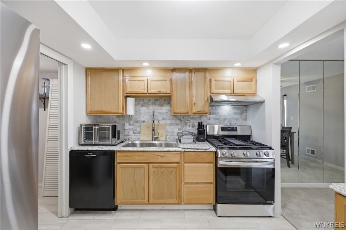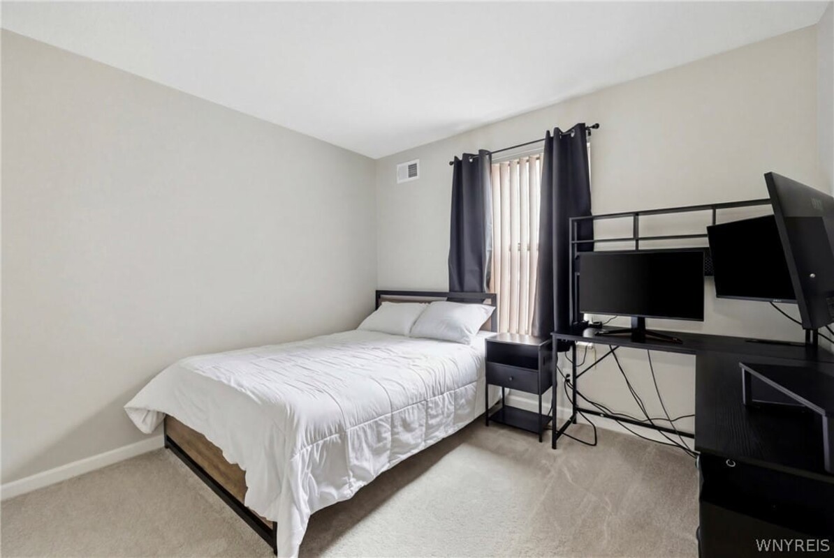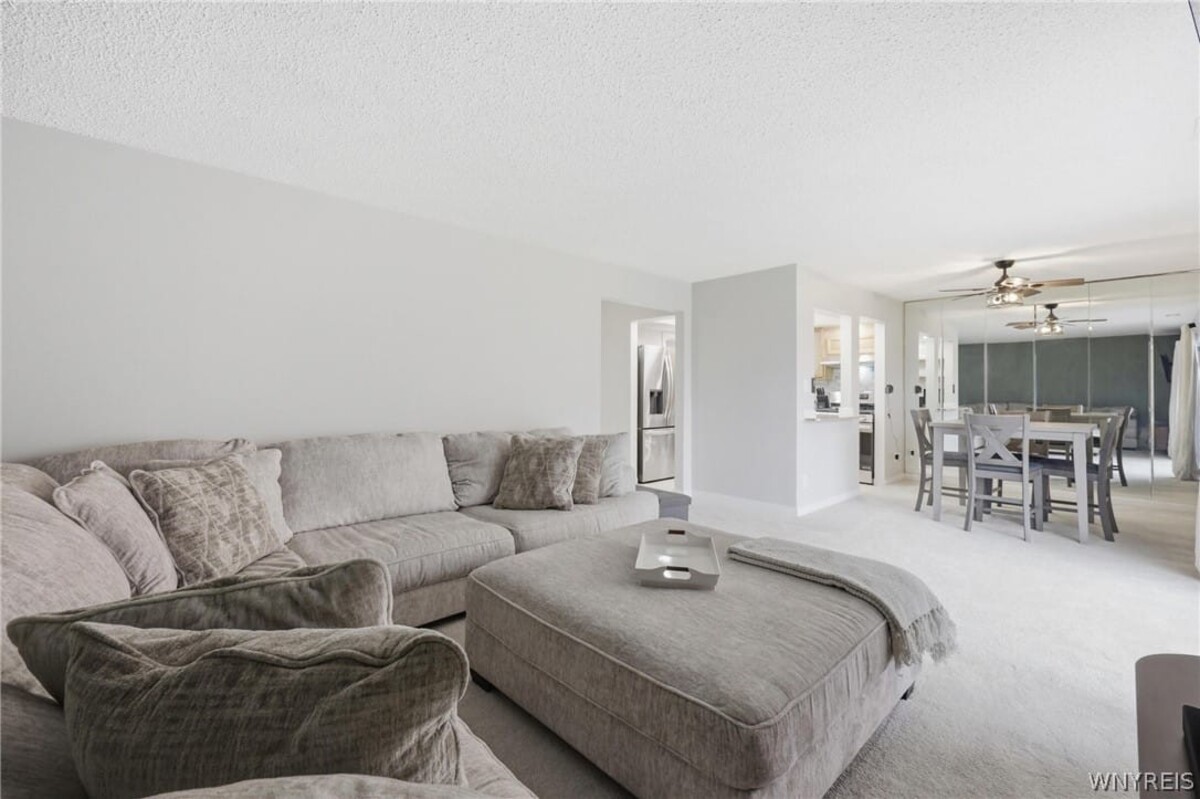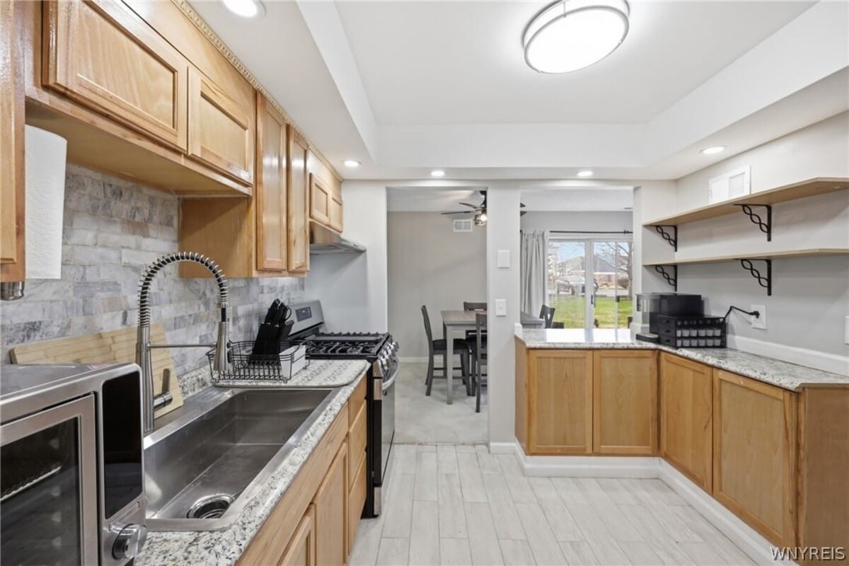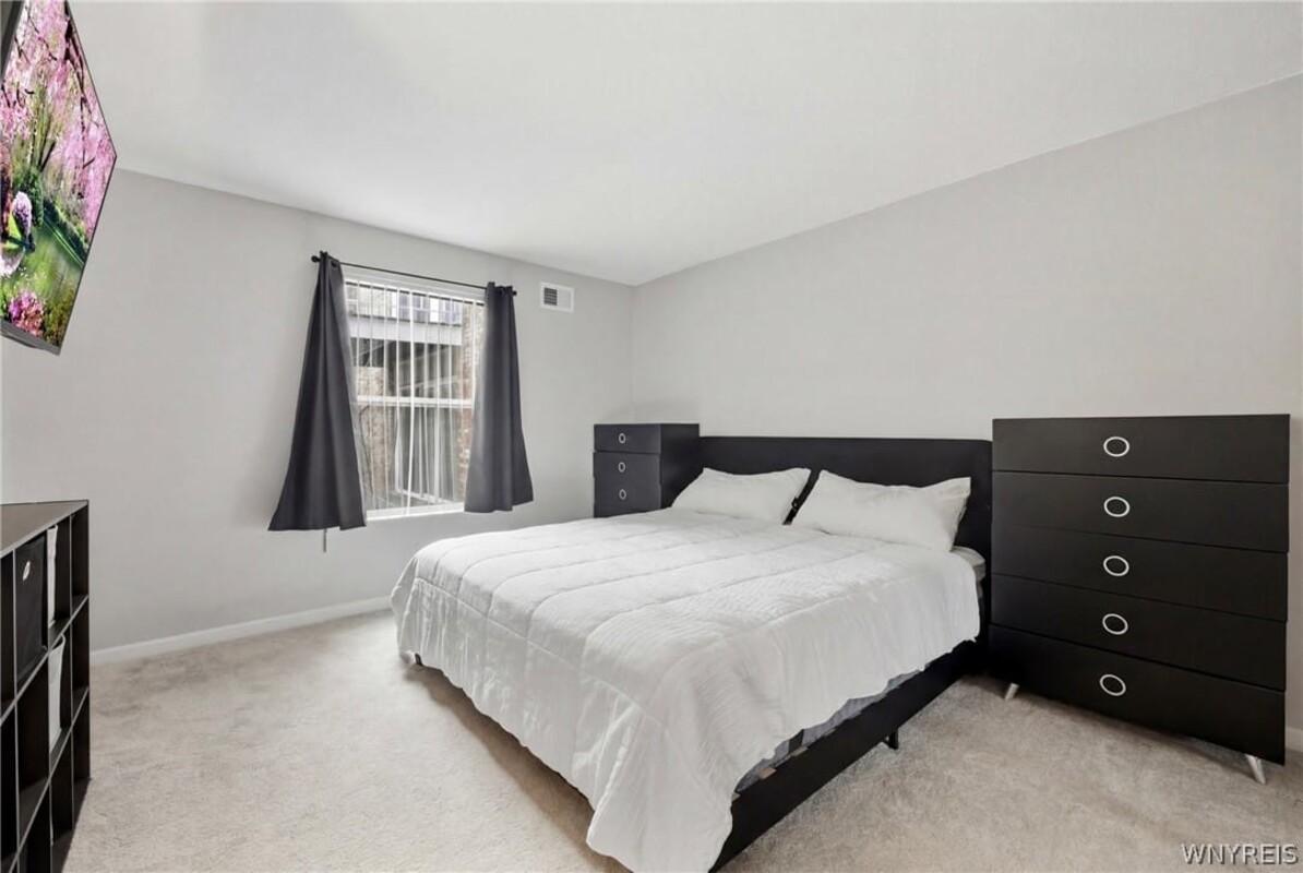 Enjoy easy, low-maintenance living in this beautifully updated first-floor 2-bedroom, 2 full bath condoideally located near University at Buffalo, shopping, and great restaurants. A spacious foyer with ample closet space leads into a bright, open layout with new carpeting throughout the main living areas. The updated kitchen features new flooring, cabinetry, a Kohler sink with pre-rinse faucet, natural stone backsplash, improved lighting, and all new appliances. Two generously sized bedrooms include a primary suite with private bath, while both full bathrooms offer quartz-topped vanities and modern updates. Additional highlights include private on-site storage and a newer furnace and A/C. Community amenities include heat, water, cable, snow removal, landscaping, and a poolmaking for truly effortless living. Open house Saturday, 4/4 from 1PM-3PM.