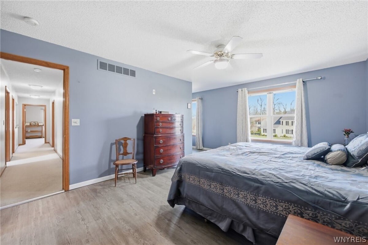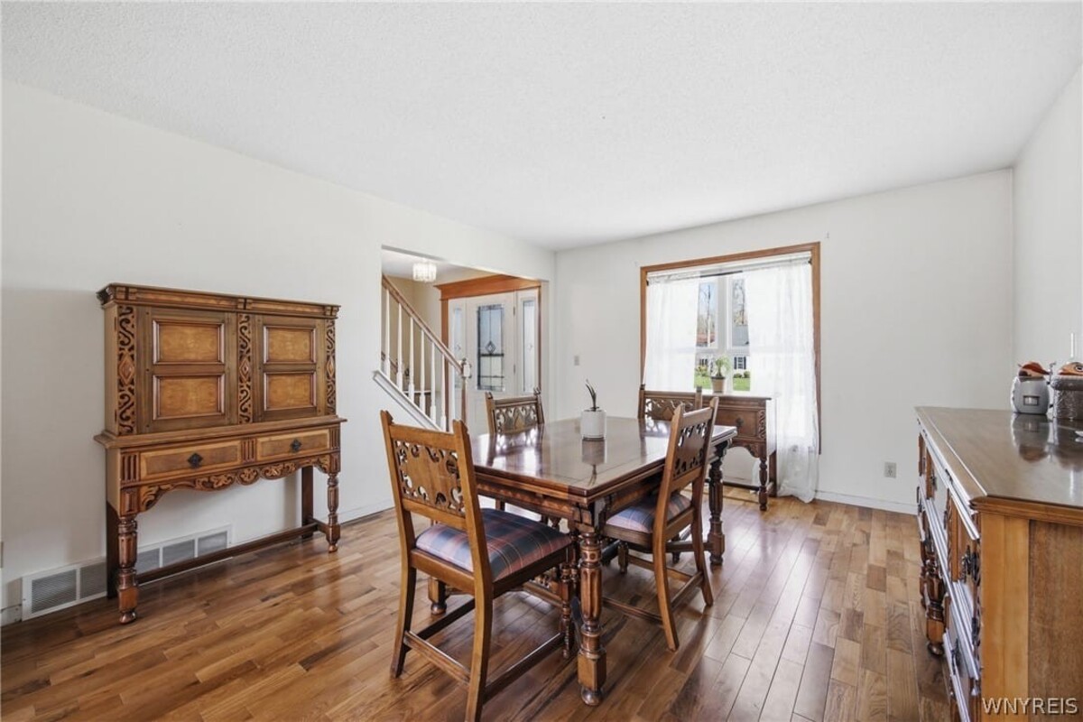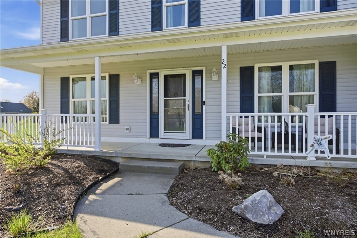 Set on a private cul-de-sac backing to Orchard Park Country Club, this 4-bedroom, 2.5-bath colonial offers a rare combination of location, space, and opportunity. A concrete driveway and covered front entry add to the homes overall functionality and curb appeal. Inside, custom engineered hardwood floors span the first floor, while the family room features a gas insert fireplace that anchors the space. The private backyard is a standout feature, complete with an in-ground pool and direct access from the home through a sliding glass doorcreating an easy flow for everyday living and entertaining. The layout offers flexibility and comfort with four generously sized bedrooms, including a primary suite with a large walk-in closet and an updated en suite bath with a tile shower. The basement adds even more potential, featuring bulkhead doors for egress and currently set up as a woodworking workshopready to be reimagined into additional finished living space if desired. With solid features, a sought-after setting, and room to make it your own over time, this property presents a great opportunity for both immediate enjoyment and long-term value.Your house hunting search might end right here!
