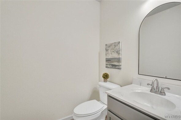 This pristine new build combines traditional elegance with modern convenience! The exterior features a classic facade with a full front porch that invites you to relax and enjoy the wooded view across the street. The landscaping is added in the front/ lawn seeded and waiting for your mower! Large living room opens to 20' long kitchen featuring white cabinetry, quarts counters, fully applianced w/new Frigidaire brand! 6' work island/brkfst bar, double pantry closet and luxury vinyl plank flooring in both rooms. Second floor has three bedrooms with plush carpet. The primary bedroom has its own bath with walk in shower and huge double door closet! Wait till you see huge 20 x 16 bonus room/carpeted and drywalled over garage but not included in sq ft-could be wonderful extra storage or add heat and the possibilities could be endless. Two entry ways to basement-thru garage and kitchen area- basement also has egress window so would be valuable space for potential future finished living area. Builder added a quality concrete patio w/access from kitchen sliding door sliding door! Elegant wrought iron /craftsman style railings at staircase, trendy lighting choices in kitchen and baths, cultured marbled tops with soft grey vanities and stylish mirrors! Nearby lake Erie for more waterfront fun at restaurants, beaches, parks!