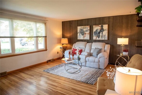 WELCOME TO THIS HIGHLY MAINTAINED 3 BEDROOM RANCH WHERE PRIDE OF OWNERSHIP SHINES! STEP INSIDE TO FIND GLEAMING HARDWOOD FLOORS THAT CREATE A WARM AND INVITING ATMOSPHERE. THIS SINGLE LEVEL HOME OFFERS COMFORTABLE LIVING WITH SUCH AN EASY LAYOUT. A 21' LONG KITCHEN IS FULLY APPLIANCED AND FEATURES SOLID WOOD CABINTERY AND INCLUDES A SUNLIT DINETTE AREA. FULL BATH CONVIENENTLY LOCATED OFF HALL WITH PRISTINE CERAMIC SURROUND IN TUB/SHOWER AREA AND GOOD SIZE VANITY! A COMPLETE TEAR OFF ROOF (30 YR SHINGLE)WAS DONE IN 2021. OTHER GREAT ITEMS ARE VINYL REPLACEMENT WINDOWS AND CENTRAL AIR! THE SEWER LINE WAS REPLACED TO THE MAIN LINE, LAUNDRY TRAY AND ITS FAUCET REPLACED IN 2022- WATER POWERED BACK UP SUMP PUMP LOCATED IN THE TRULY SPOTLESS BASEMENT!! PARTIALLY FENCED YARD - ONE CAR GARAGE- MATURE LANDSCAPING! Seller desires highest and best offers - no escalation???????????????????????? clauses.