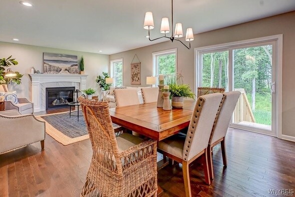 Located in the Marrano's Mission Hills patio home community in Hamburg. MOVE IN READY! Easy living lifestyle with HOA that provides snow removal and lawn care. Situated on a lot that backs up to woods (conservation area)Two bedrooms, the primary has a WIC and primary bath with ceramic tile shower. Island for entertaining in the kitchen along with beautiful cabinetry to the ceiling, a ceramic tile backsplash and quartz countertops. The kitchen is open to the dinette and living room w/ cozy fireplace. Hardwood floors throughout most of the home. Open basement entry. First floor laundry. Beautiful lighting and plumbing fixtures! Landscaping and sprinkler system included. See also ML#B1647585.