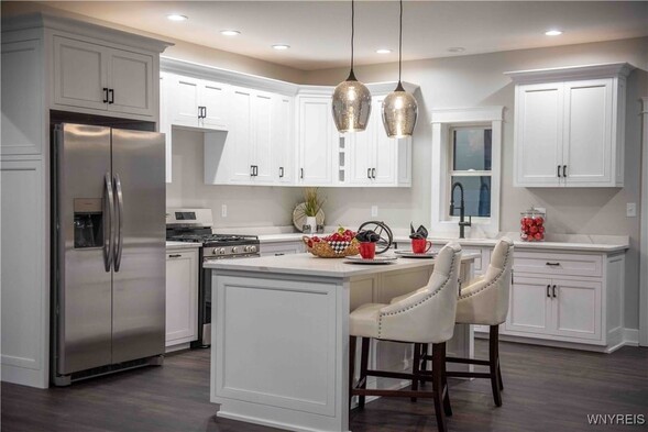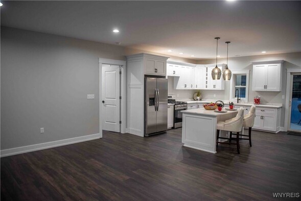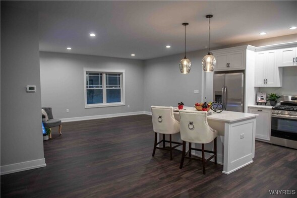 THIS INVITING OPEN CONCEPT NEW BUILD RANCH IS APPROX 99% COMPLETE! SELLER TO ADD A LANDSCAPING DESIGN TO THE FRONT EXTERIOR AND COMPLETE PILLARS AT FRONT AND BACK OF HOME! 9' CEILINGS ADD DRAMA AND ENHANCE THE SENSE OF LIGHT AND SPACE. STUNNING CUSTOM BUILT CABINETRY WITH SOFT CLOSE /DOVE TAIL FEATURES THE QUARTZ COUNTERS ARE GLEAMING! WINE RACK-SPICE RACK-DOUBLE GARBAGE CABINET. ANDERSON WINDOWS/ KOHLER PLUMBING FIXTURES/MOHAWK RICH DARK LUXURY VINYL PLANK FLOORING/TRENDY MODERN ELECTRIC FIREPLACE /FIRST FLOOR LAUNDRY/LOTS OF RECESSED LIGHTS PLUS STYLISH FIXTURE CHOICES IN KITCHEN AND BATHS! COVERED PATIO IN REAR OVERLOOKS A HALF+ ACRE LOTBORDERED BY TREES- FULL BASEMENT WITH EGRESS WINDOW PROVIDES FUTURE POSSIBILITIES OF ADDING MORE VALUABLE LIVING SPACE!