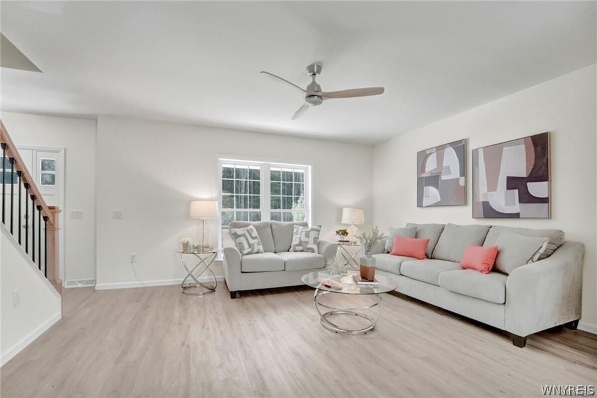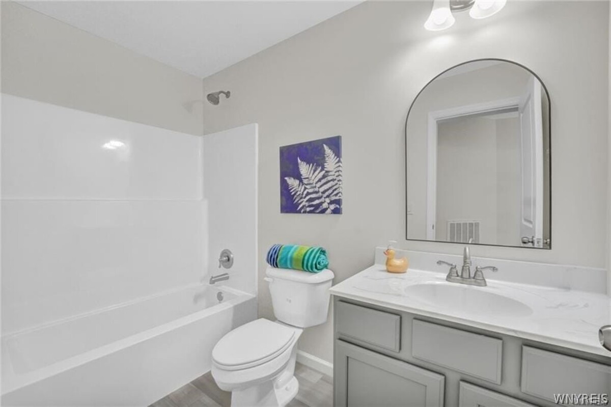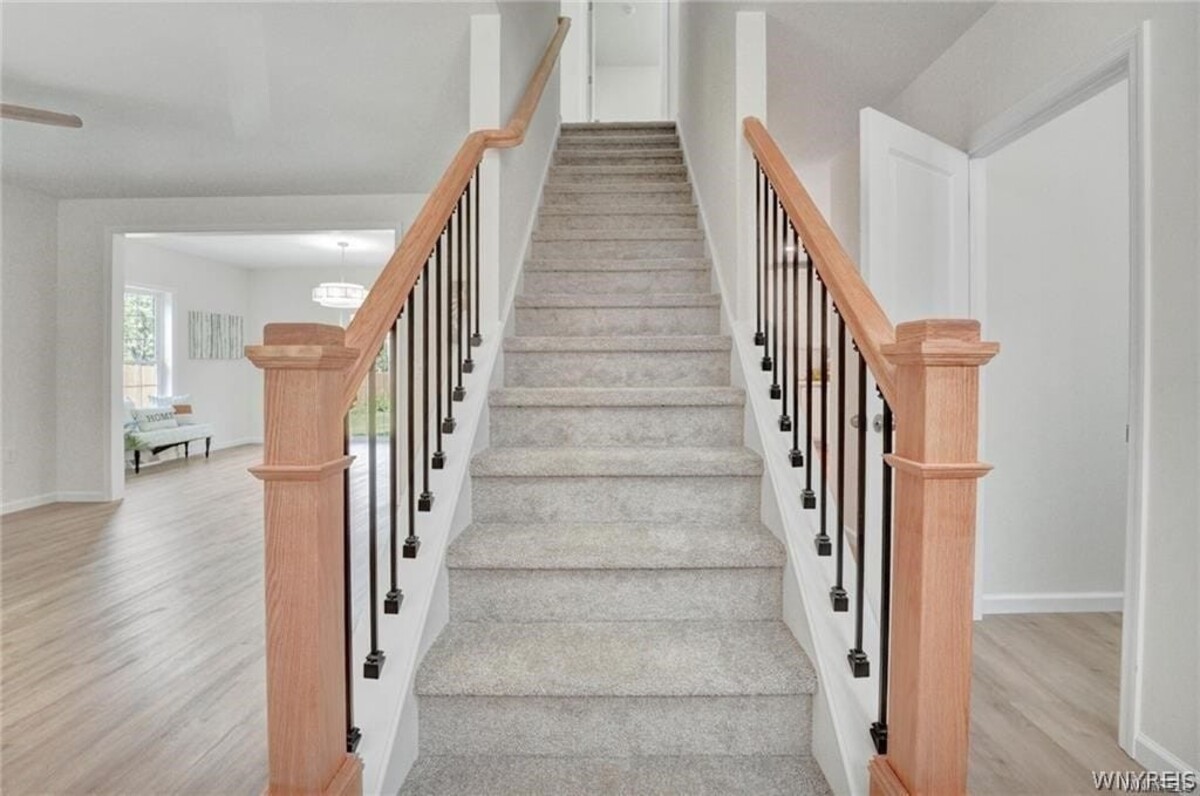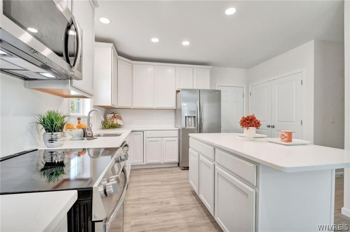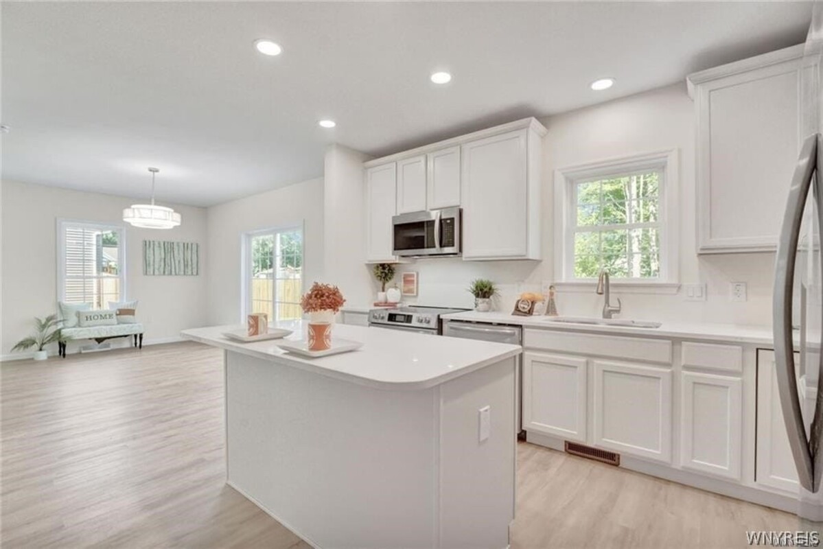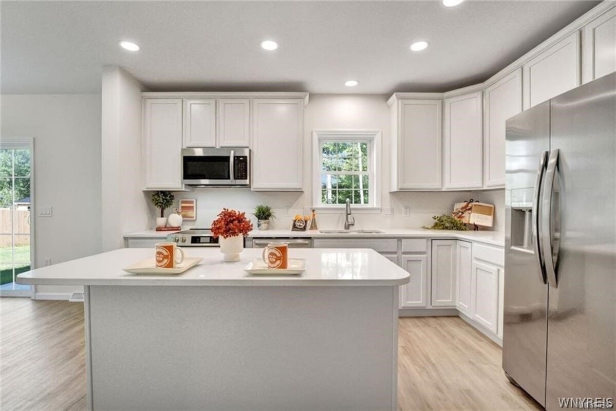 This pristine new build combines traditional elegance with modern convenience! The exterior features a classic facade with a full front porch that invites you to relax and enjoy the wooded view across the street. The landscaping is added in the front/ lawn seeded and waiting for your mower! Large living room opens to 20' long kitchen featuring white cabinetry, quarts counters, fully applianced w/new Frigidaire brand! 6' work island/brkfst bar, double pantry closet and luxury vinyl plank flooring in both rooms. Second floor has three bedrooms with plush carpet. The primary bedroom has its own bath with walk in shower and huge double door closet! Wait till you see huge 20 x 16 bonus room/carpeted and drywalled over garage but not included in sq ft-could be wonderful extra storage or add heat and the possibilities could be endless. Two entry ways to basement-thru garage and kitchen area- basement also has egress window so would be valuable space for potential future finished living area. Builder added a quality concrete patio w/access from kitchen sliding door sliding door! Elegant wrought iron /craftsman style railings at staircase, trendy lighting choices in kitchen and baths, cultured marbled tops with soft grey vanities and stylish mirrors! Nearby lake Erie for more waterfront fun at restaurants, beaches, parks!