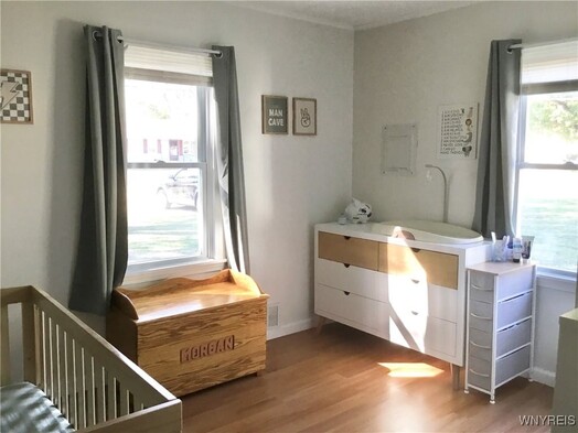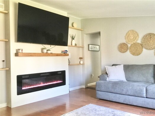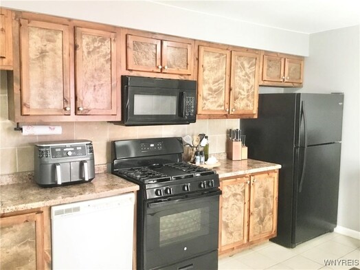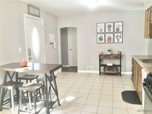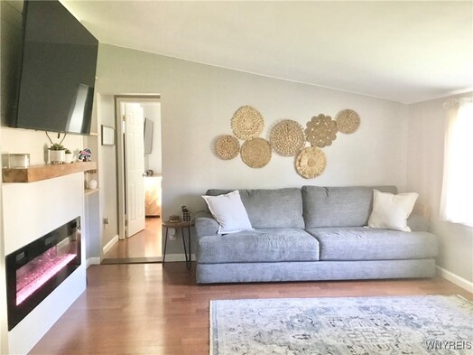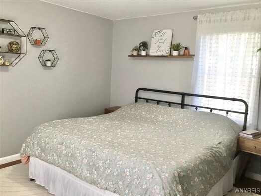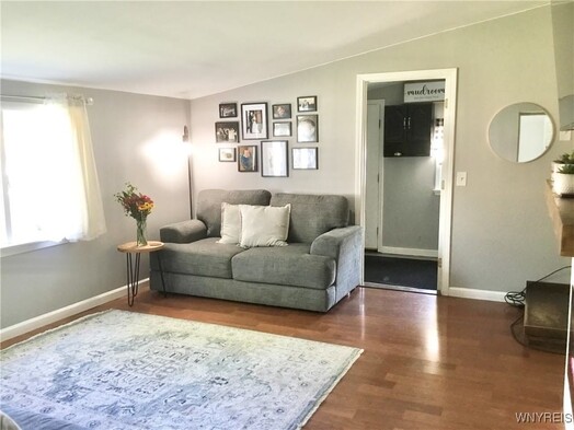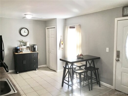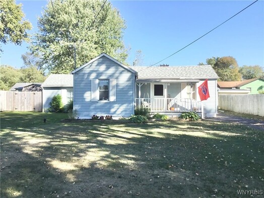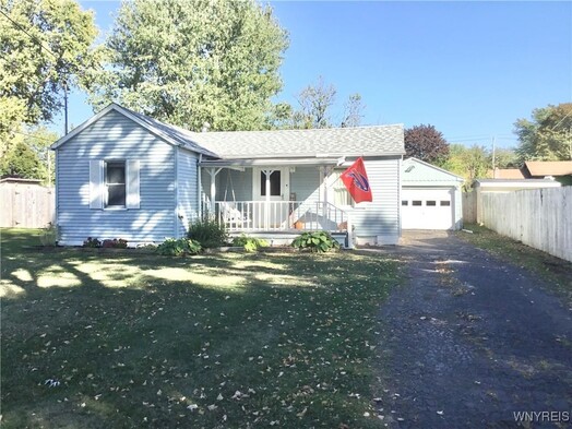 Welcome to this charming updated 3-bedroom ranch. Enjoy summer nights while sipping lemonade on your open front porch. Enter into a large, bright, updated kitchen boasting ceramic tiled floors and plenty of custom cupboards. There is also a dishwasher, stove, and refrigerator, plus a large pantry for all your storage needs. The beautiful full bath was recently remodeled and offers storage under the bathroom sink. There is a large utility room that offers first-floor laundry, a large closet, and shelving for extra organization. The large living room has vaulted ceilings, a large picture window for sunlight, and a center electric fireplace that adds a feeling of coziness to the cold winter nights while sipping hot cocoa with friends and family. Shelving on either side adds a touch of elegant decor to your picture-perfect evening. The large primary bedroom has double closets and is large enough for a king bed. The other two bedrooms are niced sized and offer ample closet space. With a fully fenced yard, you can enjoy a picnic in your backyard on the stone patio and relax the night away. And a 1.5-car detached garage tops off this spectacular home.