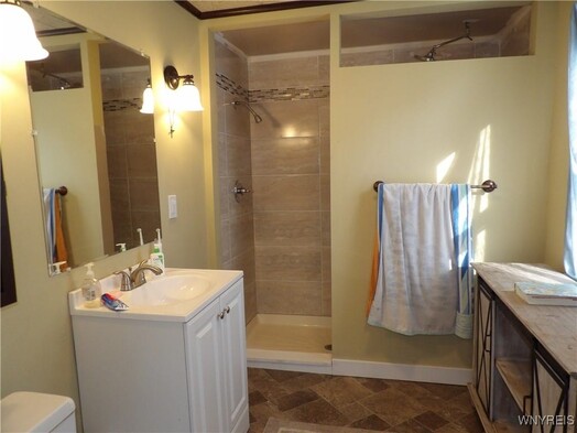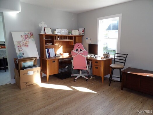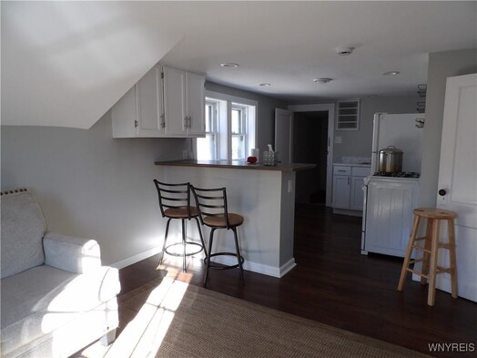 2-2-bedroom two family home. First floor apartment was gutted and beautifully remodeled 2024-2025 including plumbing, electrical, flooring, insulation, drywall, kitchen cabinets/countertops, bathroom. The apartment is like living in a brand-new home and is bright with very spacious living areas. The kitchen has new stainless-steel refrigerator, and gas stove. The first floor is rented for $1,200/ month. The second floor was updated a few years ago and has a new gas stove (2024) and a refrigerator. There is a laundry room in the rear of the house and a 23 ft. x 10 ft. storage room. Both electric services are new (2023). All plumbing supply lines are new in 2023-2024. New lower roof over kitchen in 2024, 2 car detached garage. Park on the side street for easy in and out showings.