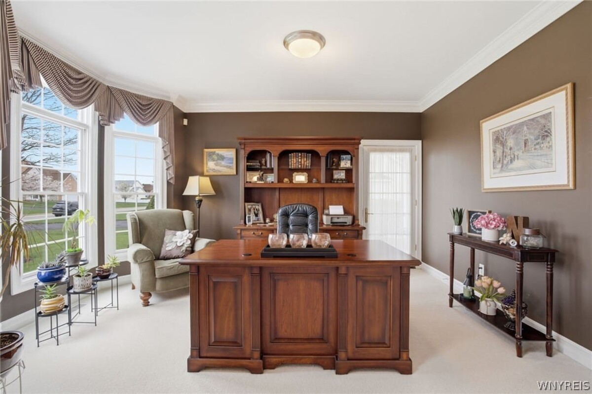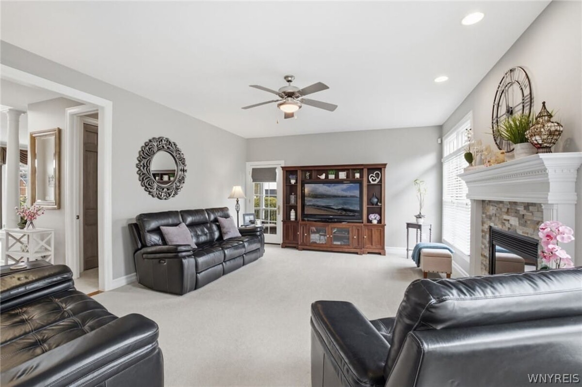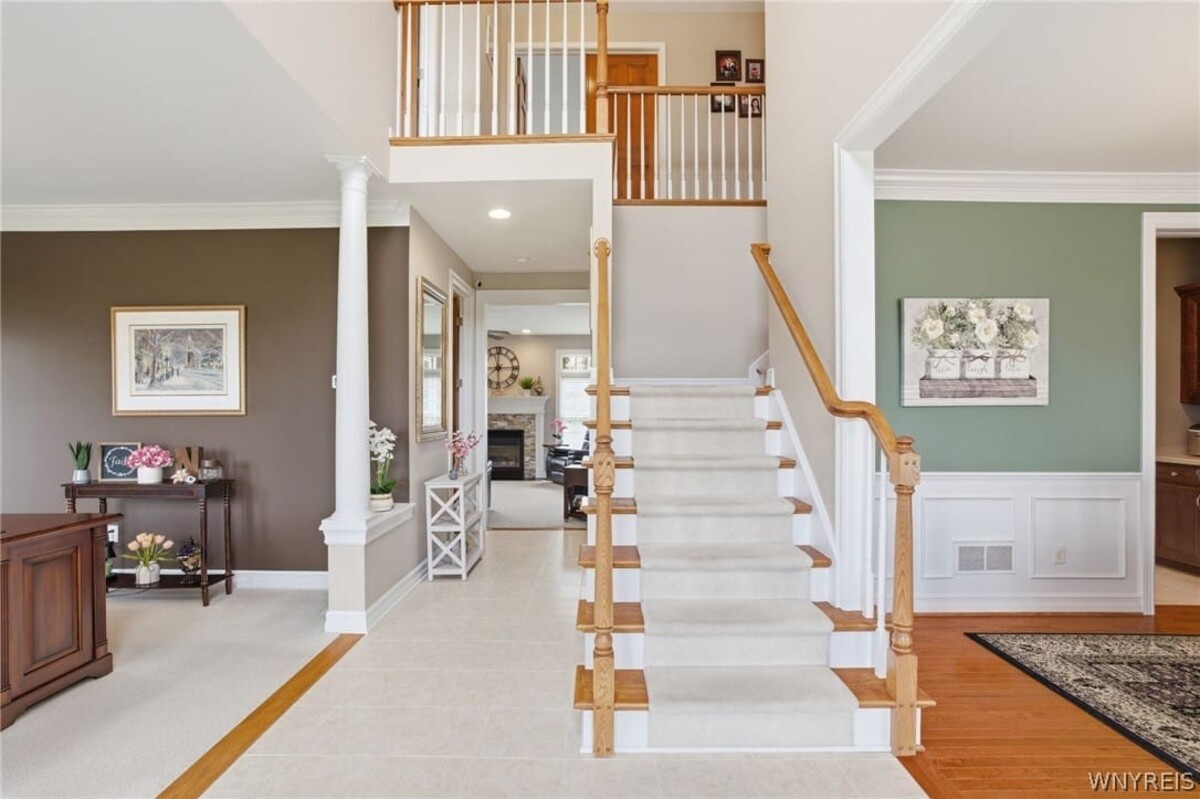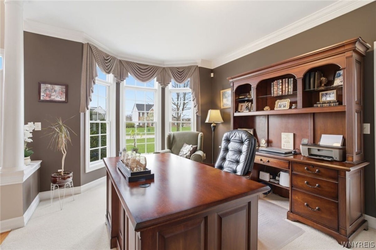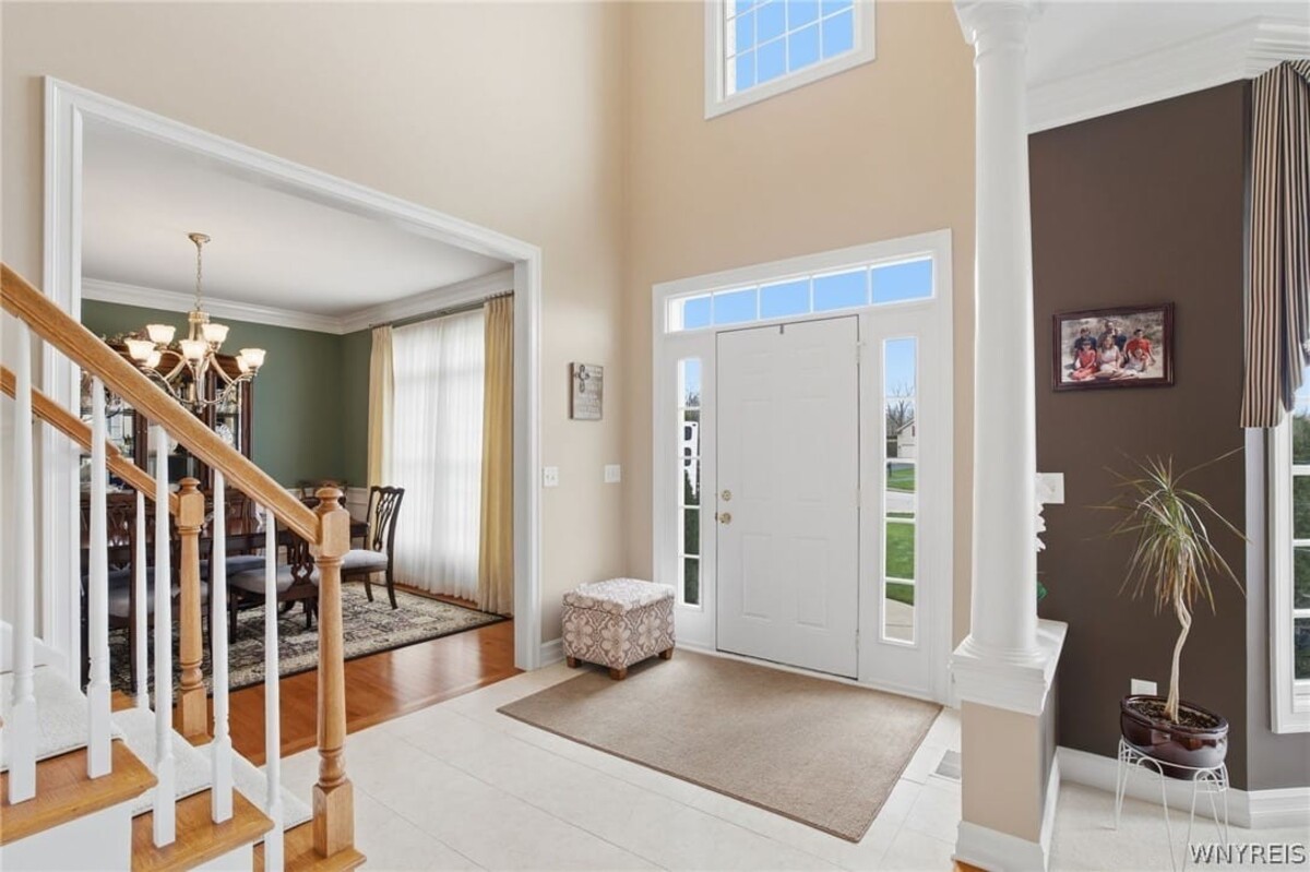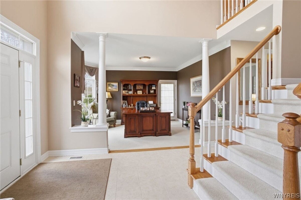 4-bedroom colonial nestled on a dead-end street near a private cul-de-sac,3.5 baths, dramatic two-story entry with columns leading into an executive den, spacious formal dining room. Large 20x15 great room with custom fireplace flanked by large windows with door to an intimate 14 x 10 veranda for your relaxation. A large kitchen opens to a bay-windowed breakfast room, 9 ft. first floor ceilings, large walk-in pantry plus a butler pantry. Sliding doors to a stamped concrete patio overlooking the backyard with a storage shed. Underground irrigation system, security system, 2.5 car garage with a work bench, all bedrooms have direct access to full baths. The master bedroom opens with a sophisticated double door and includes an inviting glamour bath with whirlpool tub, shower, and a huge walk-in closet. All the bedrooms have walk in closets. New roof was a tear off in 2019, 9 ft. basement foundation walls. Showings start Saturday, April 25th at an open house 1-3. Offers are due Thursday, April 30th by 12 pm.