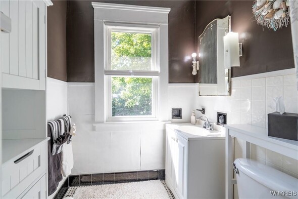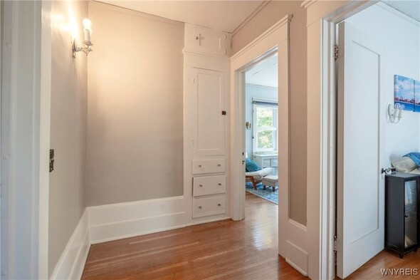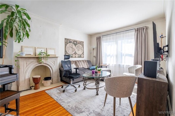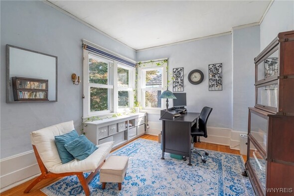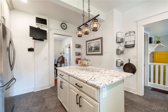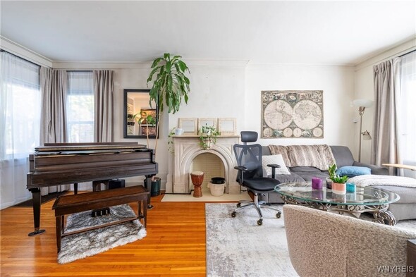 VRP pricing: owner will consider offers between $450,000 to $495,000 or higher.This exceptional 4-bedrm, 2.5-bath home offers over 2,000 sqft of beautifully finished living space across 3 floors. The 1st floor featuresnewly remodeled custom kitchenw granite countertops, functional island, ceiling-height cabinets, built-in microwave drawer, & durable Blanco Silgranit composite sink. A bright & invitingformal dining rmis perfect for entertaining, while the spacious living rm highlights theoriginal marble fireplace, built-in shelving, & gleaming hardwood floors. Upstairs, the 2nd floor offers3 generously sized bedrms and 2 full baths. The fully finished 3rd floor adds remarkable versatility w 3 additional rms, including 4th bedrm &soundproof music room. Recent updates includenew hot water tank (2024), 4-camera security system, & Generac generator. Outdoors, enjoy aquiet, partially fenced yard w stamped concrete patio, plusrare two-car garage w storage above. Present owner has a mid sized car and has no issues getting in and out of driveway! The new Trex-covered front porch adds even more curb appeal. Located just steps from the vibrant shopping & dining of Elmwood Village, this home is truly amust-see gem in a prime location!