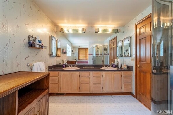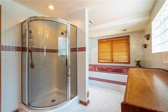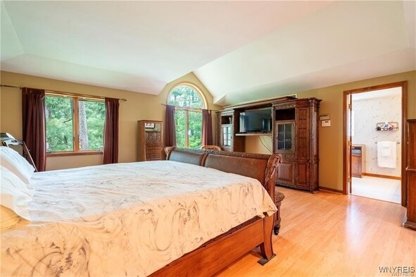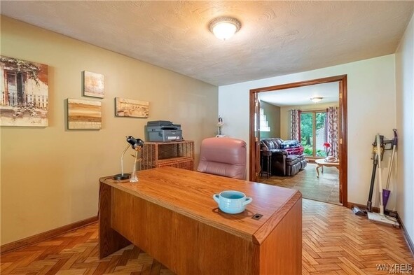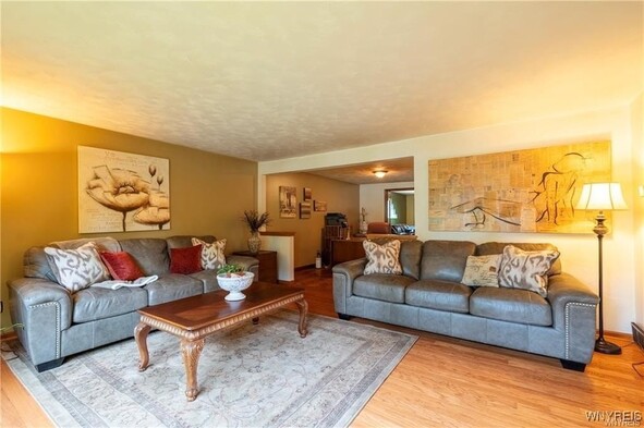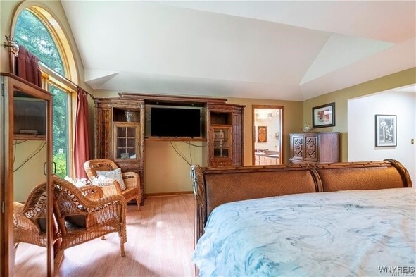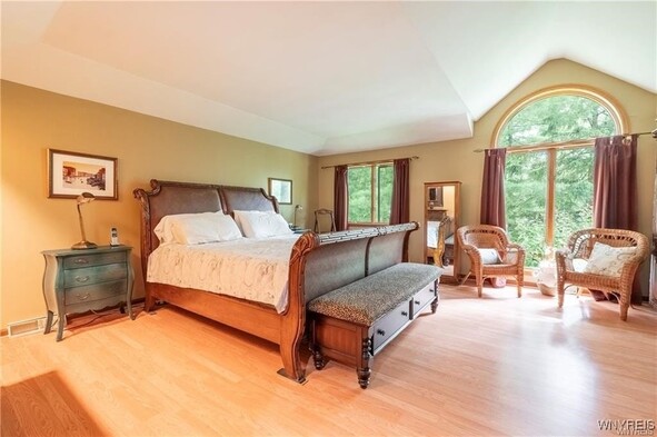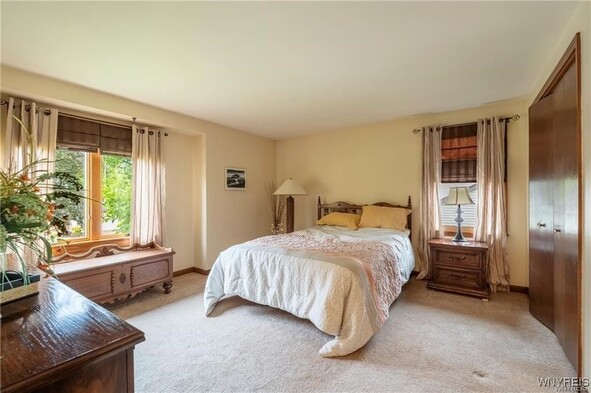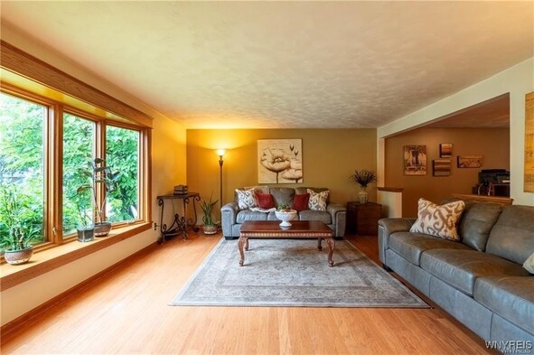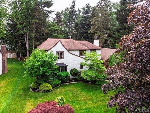 VRP- Owner will consider offers between $425,000 - $475,000 or higher. Come and see this *FRESHLY PAINTED* OVER 2,700 sq ft home in Williamsville Schools! Enjoy a park-like, meticulously maintained yard with a spacious deck, stamped patio, trellis, and shed. Entertain in the huge great room addition with wet bar and sliding doors exiting to your picturesque outdoor space. The eat-in kitchen features granite countertops and all appliances, and opens to a large dining room, living room and home office-gleaming hardwood floors throughout. The bright primary suite impresses with cathedral ceilings, skylights, huge windows overlooking the backyard, a massive walk-in closet, and a spa-like bath with dual sinks, two-person whirlpool tub, and shower. Three additional spacious bedrooms and a full bath round out the second floor. Additional storage available in the clean, dry basement. Updates include roof (11 yrs) with heating cables and skylights, two furnaces and AC units (10 & 6 years old). This is the perfect blend of space, location, and serenity.