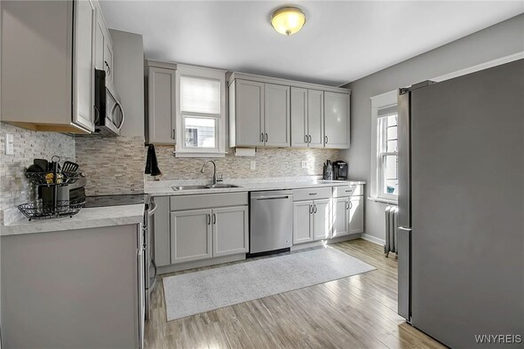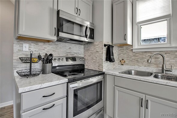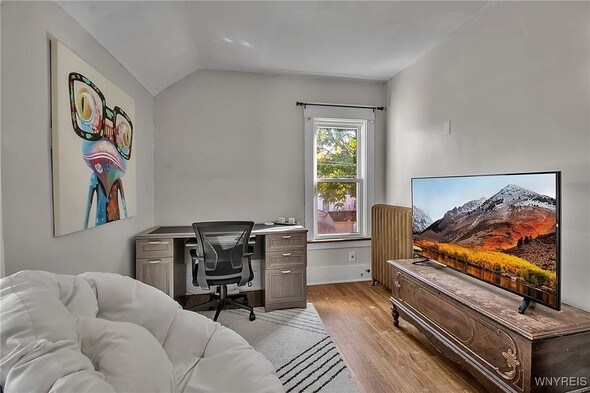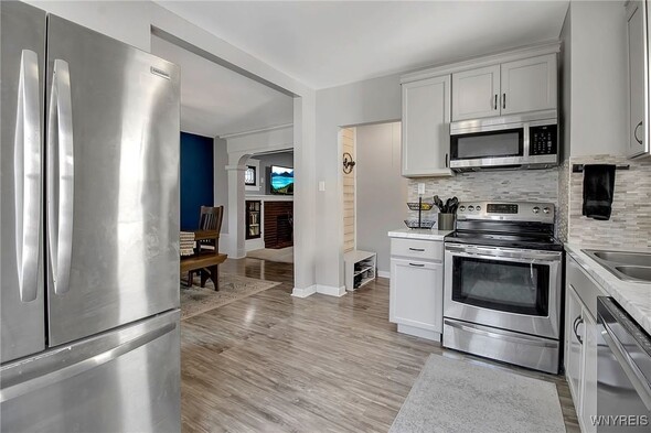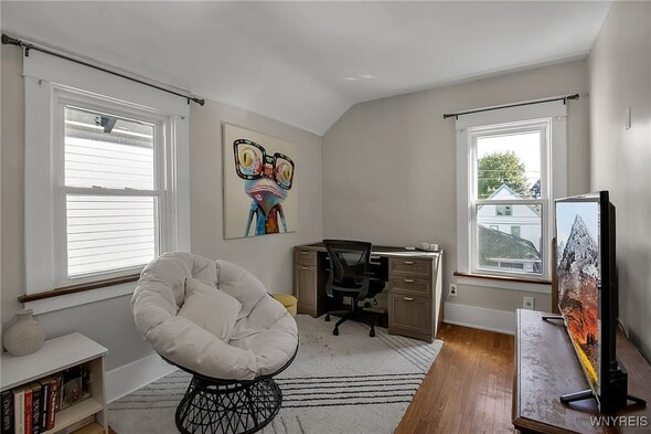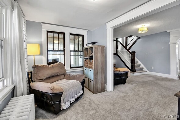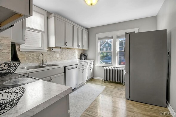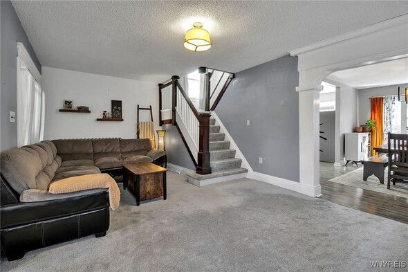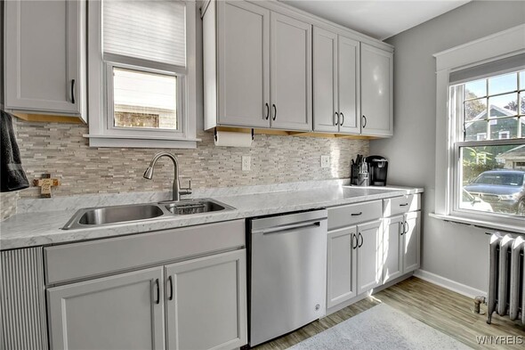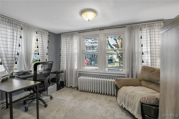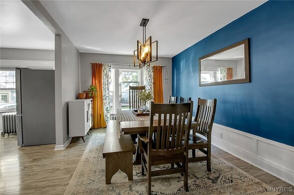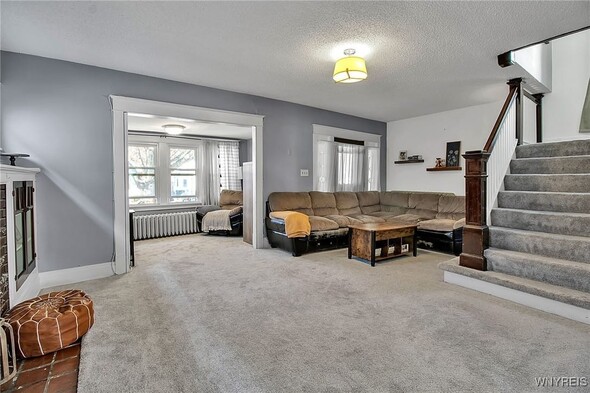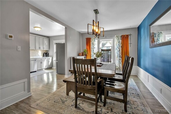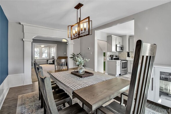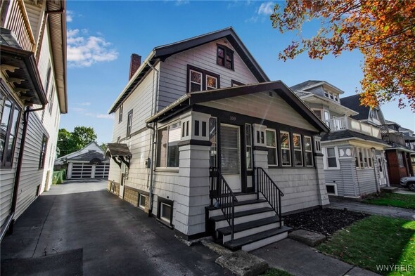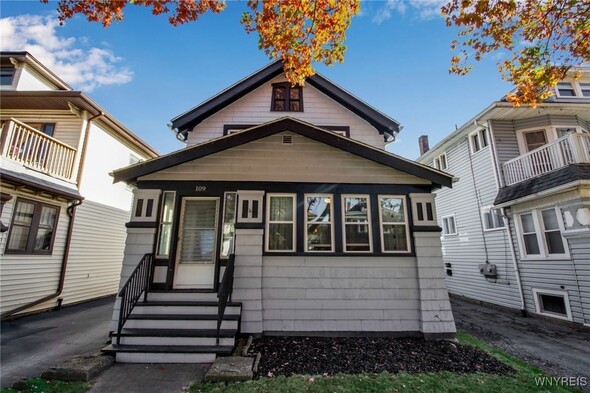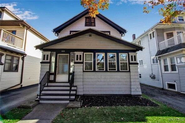 Wonderful South Buffalo home in great location! Close to Mercy Hospital and all the great S. Buffalo businesses. Short drive to Wegmans! Nicely updated kitchen. Large formal dining room. Living room with built ins, pretty leaded glass windows and artificial fireplace. Front room is a converted porch great for office or playroom, yoga room, etc. Upstairs is 3 bedrooms and a full bath. Dry basement with workshop, Updated furnace and hot water tank. 2 car garage with a side deck. Offers due Thursday, 10/30/25 @ 3:00pm.