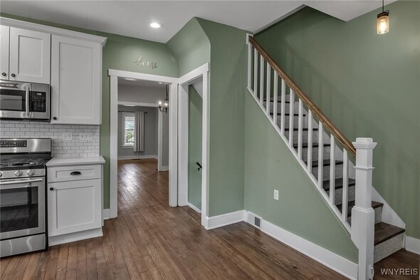 Beautifully updated 3 bedroom, 2 full bath home, nice bright kitchen. Appliances negotiable. Quartz counter tops, soft close cabinetry, original wood floors. Large dining room with original flooring continuing through the living room. 2018-insulation, walls, ceilings, doors, molding, fixtures, carpeting, furnace & HWT as per prior owner. Both full baths are beautifully updated. FF laundry with washer and dryer. Electric and roof 2012. Most windows replaced. Driveway and white vinyl fence 2018. Enclosed front porch. This house is move in ready!