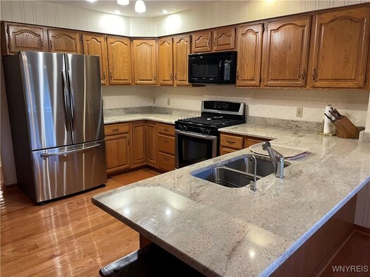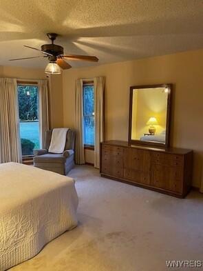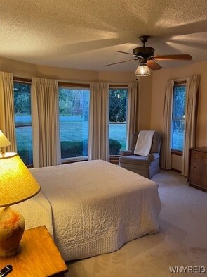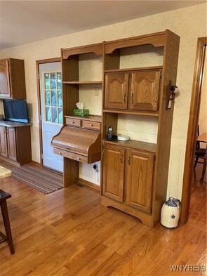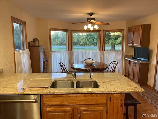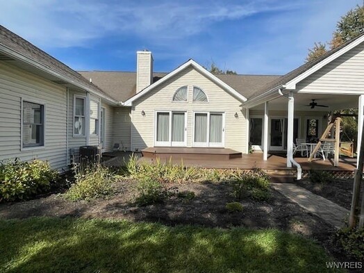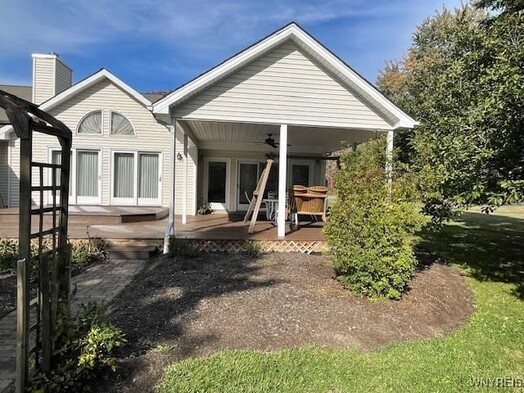 Private, Peaceful, Perfect that is how you will feel when you pull up to this 3 bedroom, 2 bath Ranch, that is set back from the main road, surrounded by trees, lawns and enclosed garden. You can easily access this serenity from the family room, featuring a vaulted ceiling, fireplace and bookshelves or cozy sunroom, or den, all leading out to covered & open decks. The large country kitchen has granite countertops with overhang for stools, stainless steel appliances, writing desk and separate eating area that leads out to your front covered porch. If that is not enough, room for entertaining - enjoy the formal dining room. Both with beautiful hardwood floors. The private primary bedroom bath, with a walk thru to the sunroom, has a step-in shower with safety bars and jacuzzi bath. The den and remaining 2 bedroom are on opposite side of home giving one privacy. A partially finished room in basement has kitchen cabinets, a sink, fridge, freezer, Rec room, workshop. As an extra bonus, a 24 x 24 detached garage with workbench that is waiting for that sports car! Home has a permanent emergency generator. You really don't want to miss out on this one of a kind home with a postcard setting.