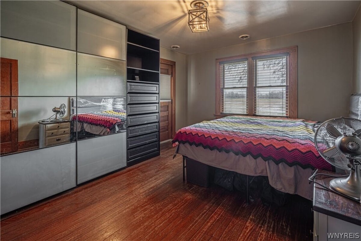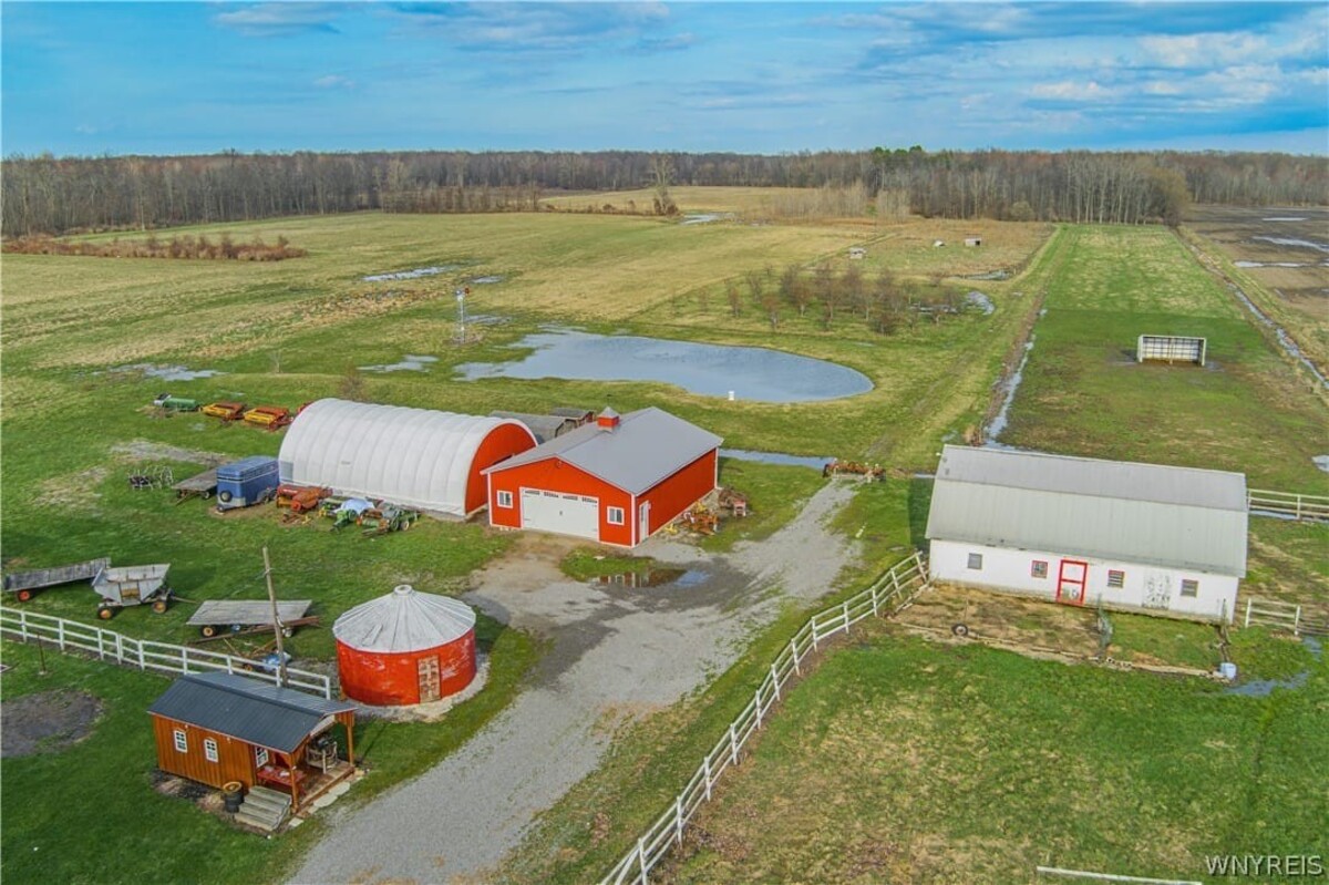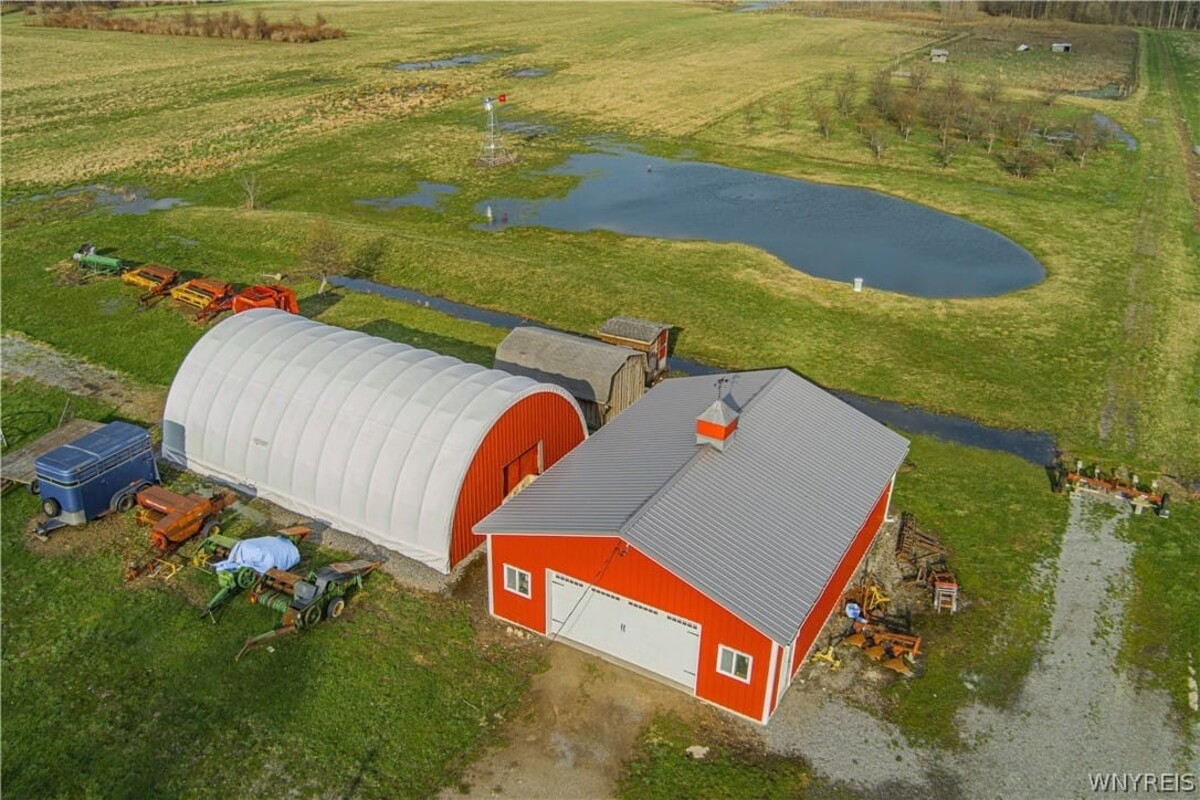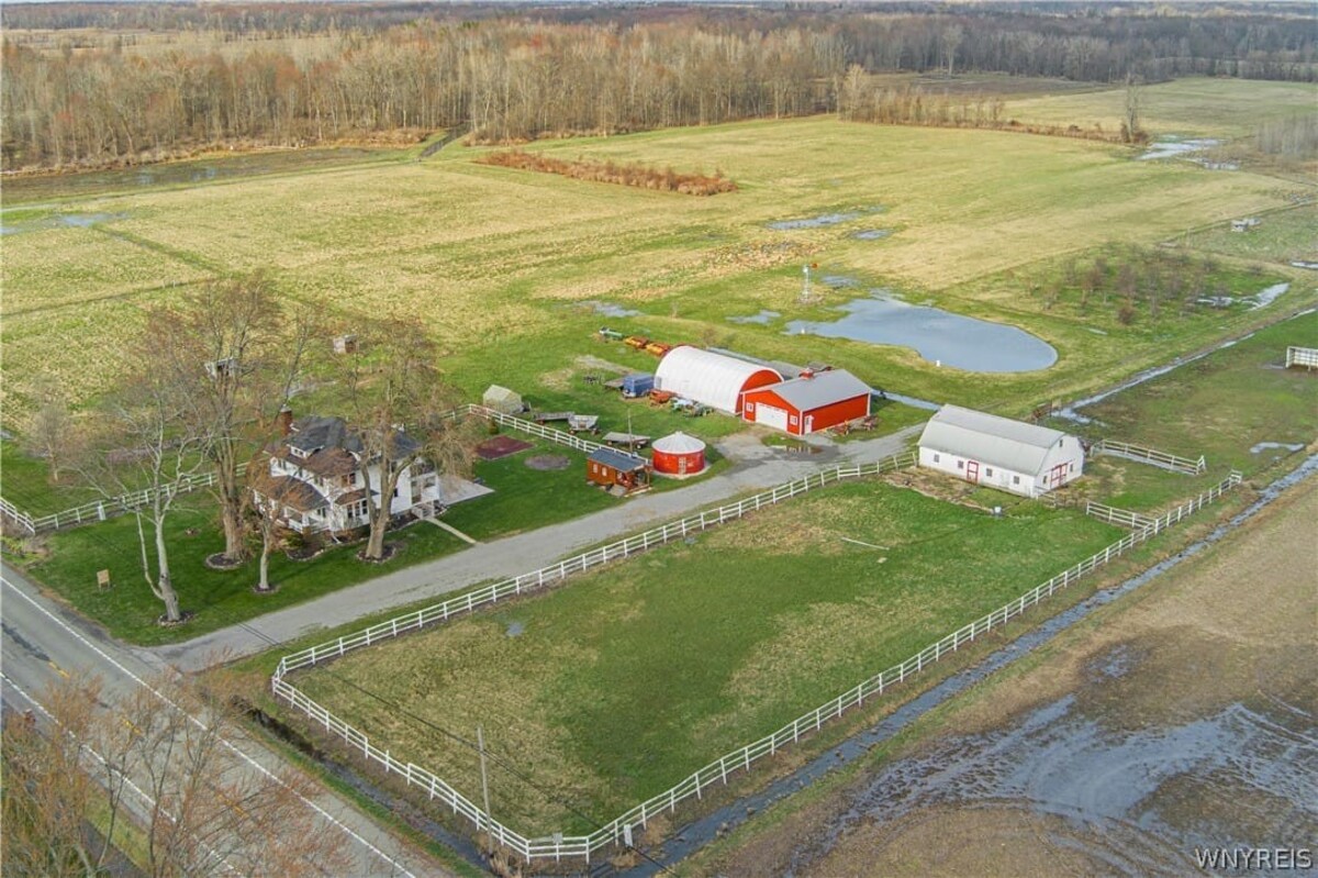 Beautiful Four Square Farmhouse on 41+ Acres in the Town of Wilson. This classic 1930 farmhouse perfectly balances timeless character with thoughtful updates featuring four bedrooms, 2 full baths and 2,342 sq. ft. of living space, showcasing original hardwood floors and natural woodwork throughout. The first floor features a spacious kitchen with lots of cabinets and walk-in pantry, formal dining room w/ gorgeous woodwork, large living room w/gas fireplace & full bath. Upstairs features a great four square lay out with full bath, extra room (could be office, storage or 5th bedroom) & spacious walk up attic. The primary bedroom features a balcony overlooking the farm. Also, quality mechanics & full, dry basement. Outdoors, the property offers horse pastures, hayfields, and approx 10 acres of woods at the rear of the parcel; fully stocked pond with windmill aerator; three barns: a 32x46 livestock barn with hayloft, electric and water, 30x40 shop with 220v power & concrete floor, plus a 30x48 fabric tension barn. If you are looking for a country property, this one is worth your time to view!