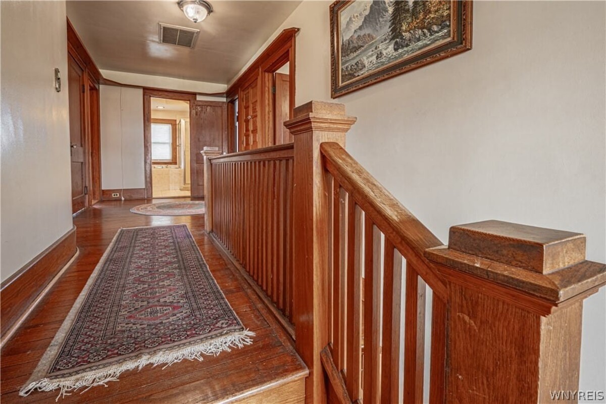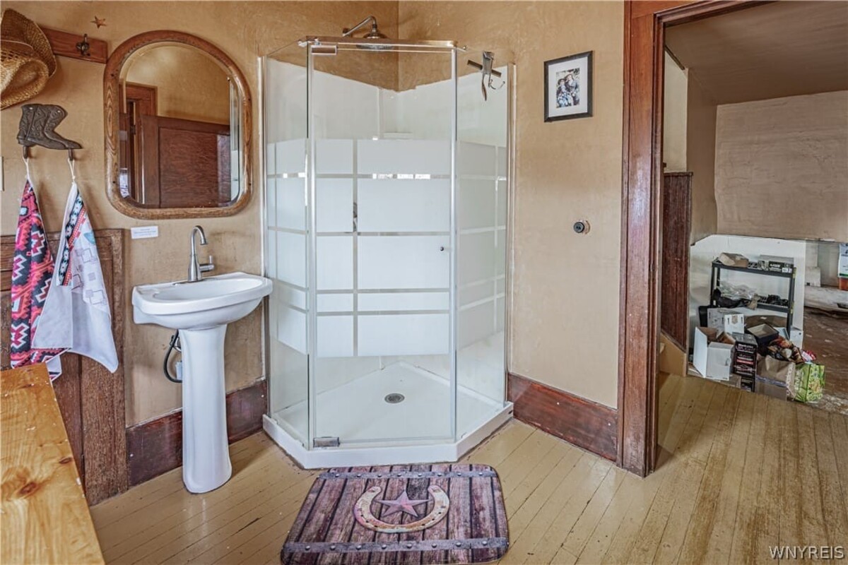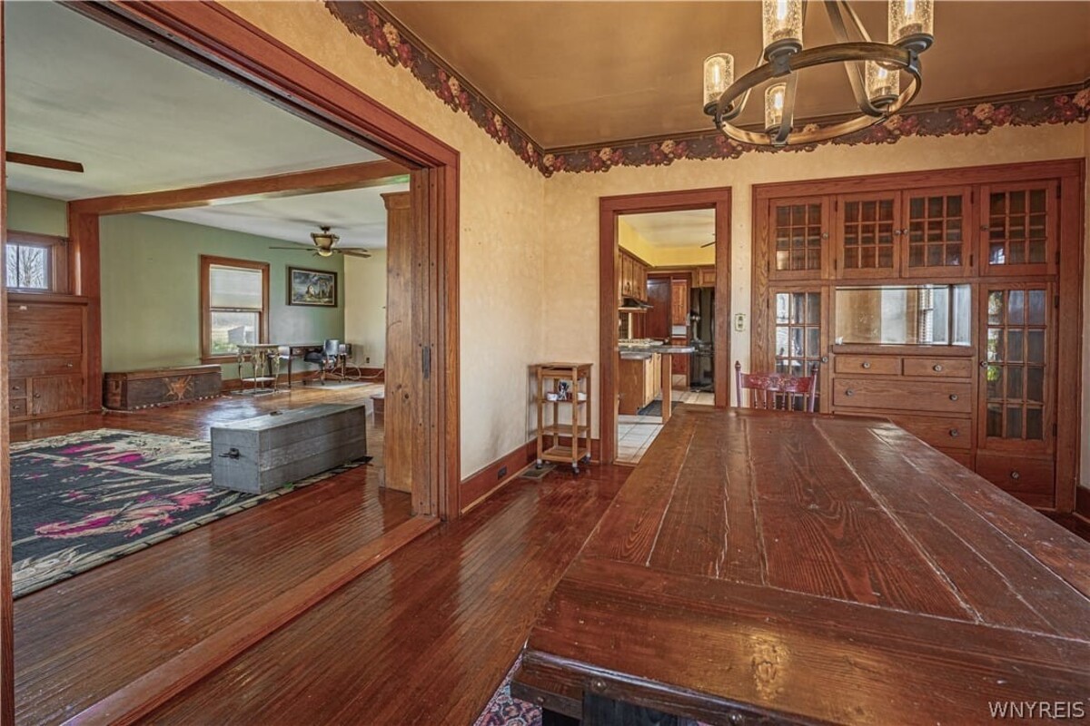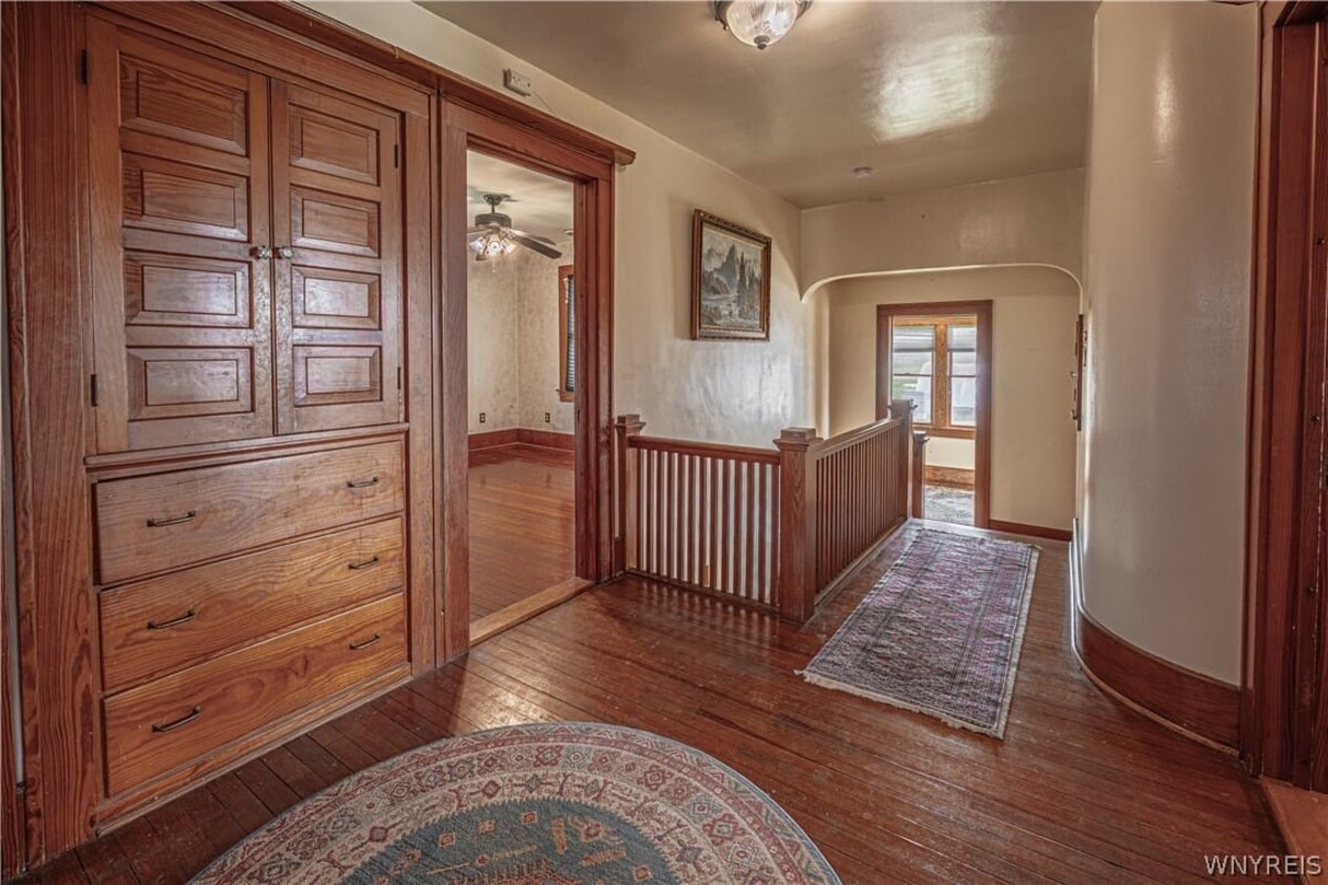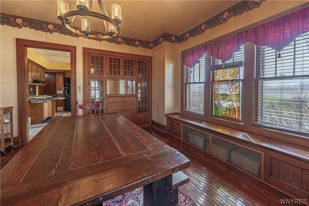 Beautiful Four Square Farmhouse on 41+ Acres in the Town of Wilson. This classic 1930 farmhouse perfectly balances timeless character with thoughtful updates featuring four bedrooms, 2 full baths and 2,342 sq. ft. of living space, showcasing original hardwood floors and natural woodwork throughout. The first floor features a spacious kitchen with lots of cabinets and walk-in pantry, formal dining room w/ gorgeous woodwork, large living room w/gas fireplace & full bath. Upstairs features a great four square lay out with full bath, extra room (could be office, storage or 5th bedroom) & spacious walk up attic. The primary bedroom features a balcony overlooking the farm. Also, quality mechanics & full, dry basement. Outdoors, the property offers horse pastures, hayfields, and approx 10 acres of woods at the rear of the parcel; fully stocked pond with windmill aerator; three barns: a 32x46 livestock barn with hayloft, electric and water, 30x40 shop with 220v power & concrete floor, plus a 30x48 fabric tension barn. If you are looking for a country property, this one is worth your time to view!