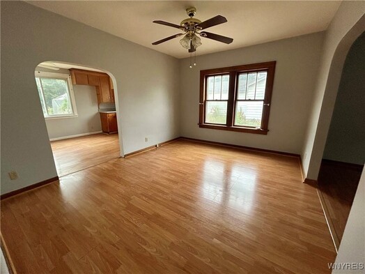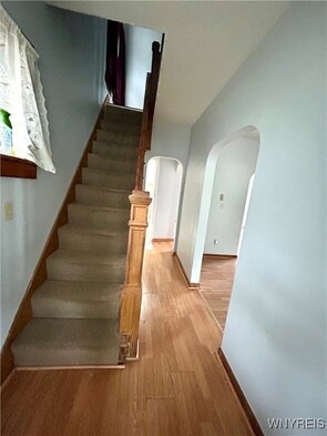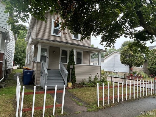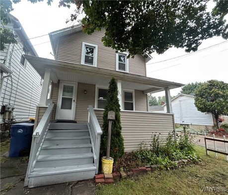 Clean, freshly painted and affordable! Relax and enjoy coffee on the large covered front porch. Nice 4 bedroom (3rd bdrm is a walkthrough), with 1/2 bath and laundry on the 1st floor. Spacious living areas include an eat-in kitchen, formal dining room and living room. Upstairs there are 4 bedrooms and a full bath. Vinyl sided, rear deck, blown in insulation and solid mechanics make this a great home! Easy to see. Please do not park in the neighbors driveway on the right. Parking in the driveway in back of the house is in the alley off N Adam St.
