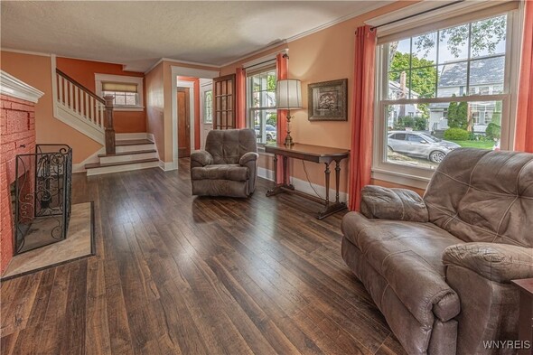 Wonderful Colonial, Offers Outdoor Living! Comes with all the character you expect on Morrow Ave! Step inside to a living room with woodburning fireplace and french glass doors to a beautiful 2-tiered deck. Formal dining room, an efficient kitchen with stainless steel farmhouse sink and a half bath to round out the 1st floor. Hardwood floors in the 3 bedrooms upstairs and a full bath with a tub and shower. Newer windows throughout the home. 2.5 Car detached garage. Very well maintained basement offering storage and a workspace if you wish. Spacious driveway is owned by seller. Neighbor has right of way to get to their garage. Gorgeous landscaping complete with Arbor!