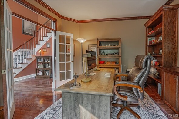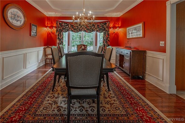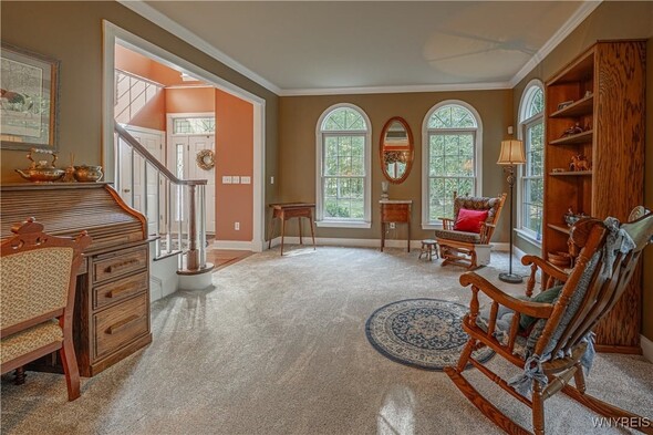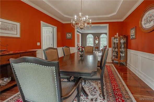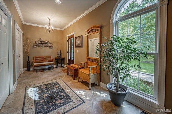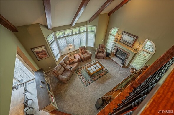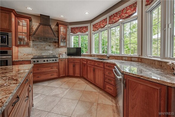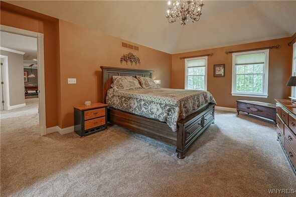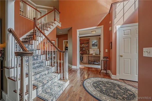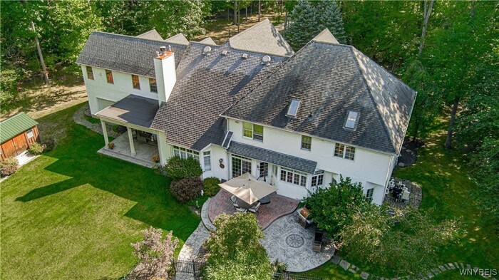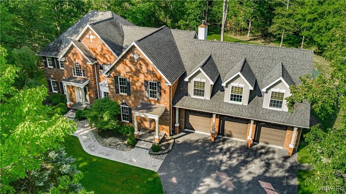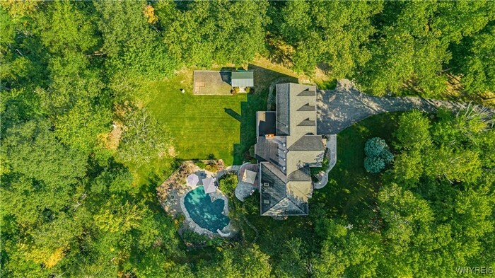 Stunning Traditional home with beautiful spaces to entertain inside and out! From the fantastic floor plan and fine finishes to the gorgeous grounds and in ground pool, this is a heavenly place to host family and friends. First floor showcases a large formal living and dining area. A marvelous den. Gourmet kitchen offers top of the line appliances, custom cabinetry, breakfast bar, gorgeous granite and bar/serving area. The fabulous family room has a soaring ceiling and wood burning fireplace. An unbelievable utility room works as a study area, laundry room, and 2nd kitchen. 2nd floor boasts 4 large bedrooms, the primary with ensuite bath. The partially finished basement is complete with an Irish pub style bar, home theater and bonus living space. Don't miss the 3D Virtual Tour. Covered patio and 3 car attached garage. This professionally landscaped 4.8 acre parcel offers groomed trails and privacy. A luxurious home in a terrific location.