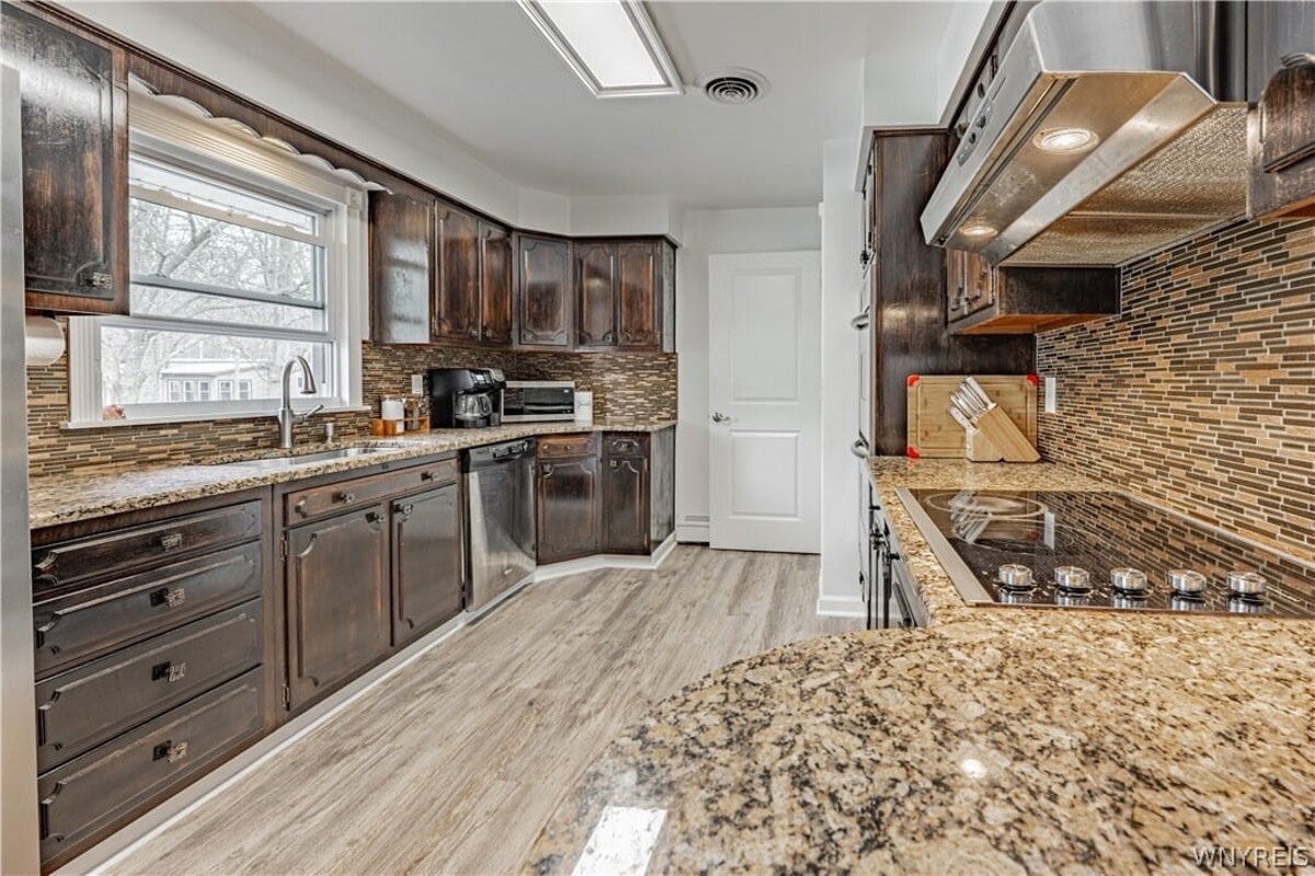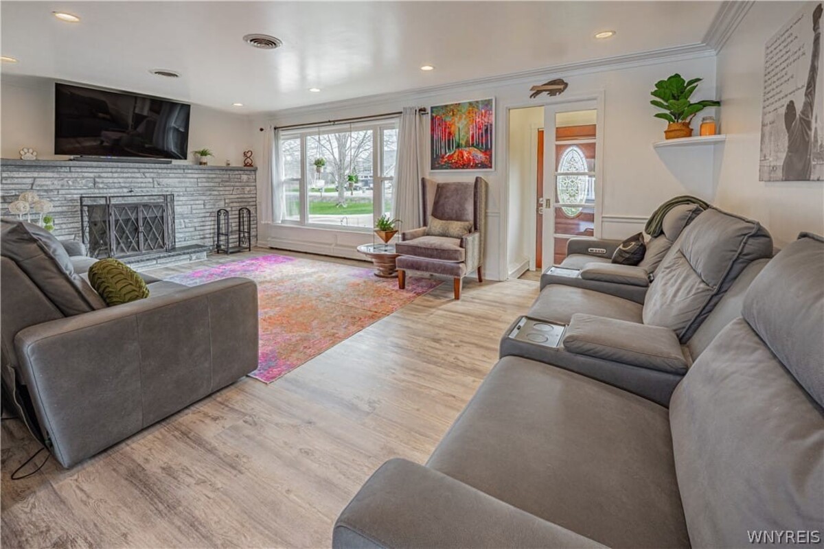 Wonderful Brick Ranch! Nicely updated on 1.6 acres in a superb location! Step inside and fall in love with the fabulous open floor plan and flowing natural light. Luxury Vinyl Plank flooring throughout. The living room boasts a beautiful stone hearth, woodburning fireplace and pretty picture window. Granite countertops in the kitchen, double oven and plenty of cabinet space. Your dining area looks out the oversized sliding glass door to a 2 tiered Trex deck and heated above ground pool! Perfect for pets with a partially fenced in yard. A shed, woods in the back and 220 amp outlet on the patio for a hot tub. 882 square feet is being added from the heated rec room, laundry room and full bath in the finished basement (nice tiled shower). Central Air 2023. Starpoint schools and Pellicanos just a few minutes away, what more do you need?! Showings begin at the Open House on Sat, 4/18 from 11-1 and Sun. 4/19 from 1-3. Offers will be reviewed 4/23 at 3pm.