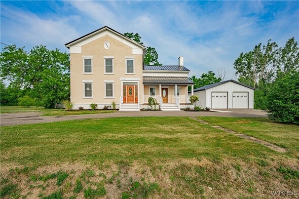 Welcome home to this beautifully restored 4 bedroom farmhouse nestled on 7.45 country acres. Nothing to do but move in! Everything has been redone from top to bottom. Roof, windows, doors, drywall, flooring, electrical, plumbing, mechanics, porches, septic system and more! Tasteful neutral pallet throughout. There is a large country kitchen that features granite countertops and a huge center island. Second floor laundry for added convenience. All of this in a great location, quiet yet close to the conveniences of Lockport and Amherst and in Royalton Hartland School District. Tax records state 2214 sq. ft but does not reflect the finished third floor of 270 additional sq ft.