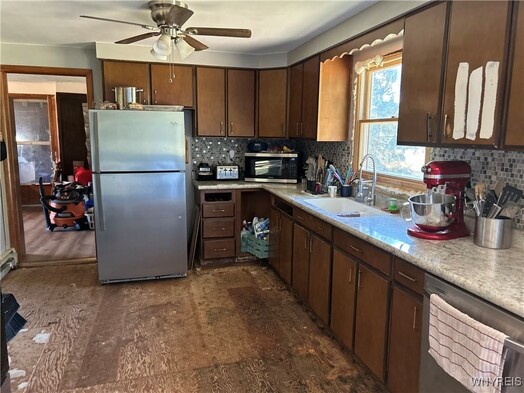 This 3 bedroom 1.5 bath ranch needs some help bringing it back to its original beauty. Set on .67 acre that borders Six Flags Darien Lake. 4 season passes are provided yearly by the park. The kitchen is spacious. Luxury vinyl plank flooring has been purchased but needs to be installed. All SS appliances are included. Large living room with wood fireplace and tons of natural light. There is a family room on the opposite side of the fireplace that is currently used for office space. Laundry room with a small water closet has plenty of room to expand into at least a 1/2 bath. Desirable Pembroke schools make this gem worth every penny. Sold As Is. Open House Sunday 8/3 from 1PM to 3PM.