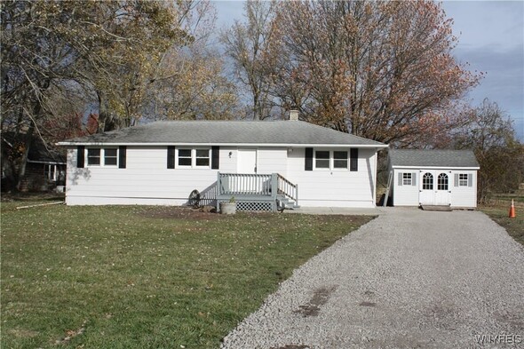 Ranch home in Starpoint school district. Cash only sale. Owner has a good start on the necessary rehab with new furnace, HWT, electric and house generator panel, Generator looks like new. Demolition of the kitchen and bath completed to studs but needs finished. Exterior freshly painted, new stone driveway, great flag lot at 3.9 acres, large storage shed and the roof is in good shape. Many energy efficient vinyl windows. Has both a front porch and rear deck. Owners limited time does not allow him to complete project. Work still being done but looking for someone to take over. Showings start immediately and offers reviewed as they come in.