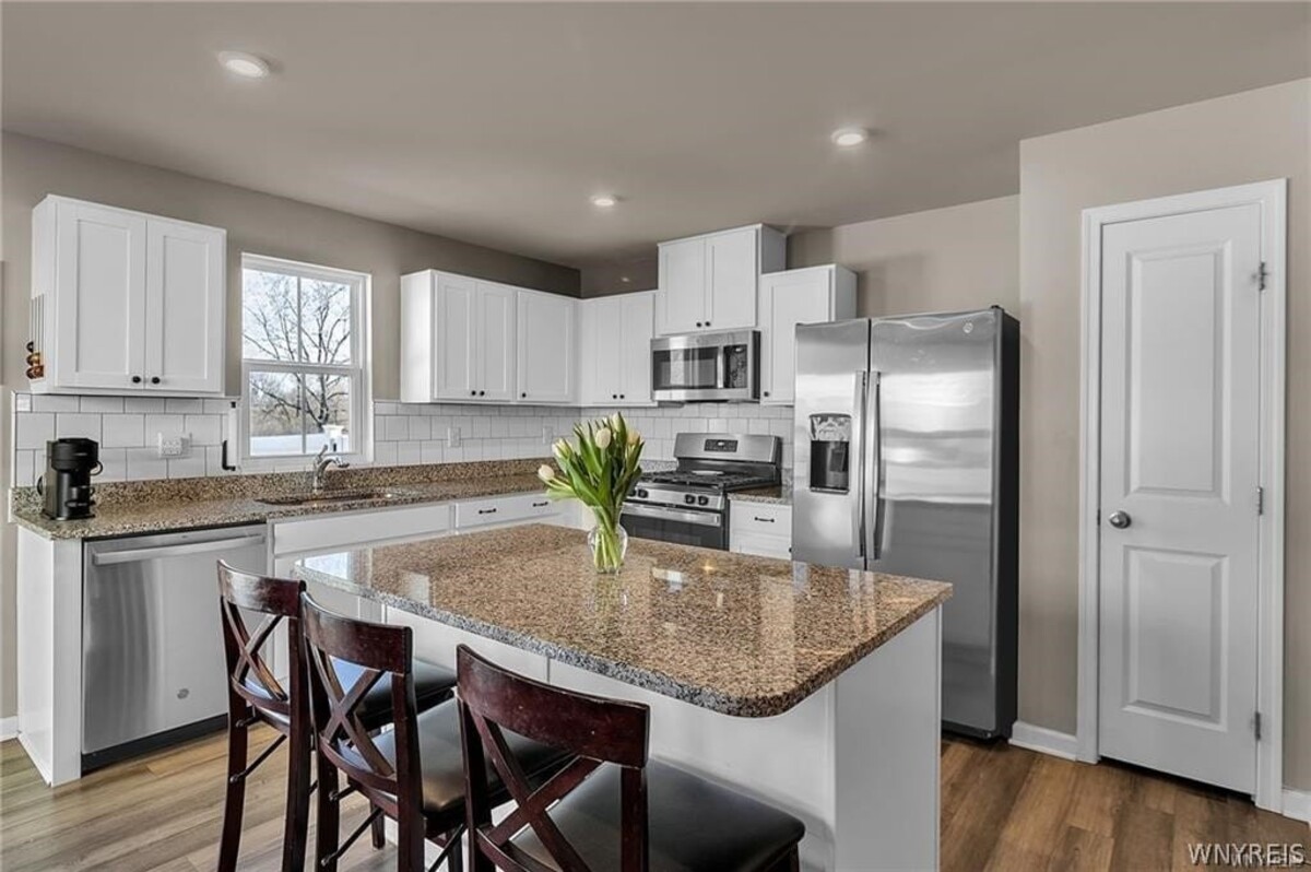 Welcome to Queens Landing! Gorgeous Townhome with no Association Fee! Beautiful 3 bedroom 2 1/2 bath built in 2022 - You'll love the modern open concept floor plan. So many upgrades in this home include Luxury Vinyl Plank floors throughout the 1st floor, granite countertops, island with breakfast bar, pantry, separate dining area, stainless steel appliances and upgraded cabinetry. Additional recessed lighting and windows were thoughtfully added when built! Upstairs you'll find a primary suite with walk-in closet and private bath with dual vanity. 2 Additional bedrooms, full bath and second floor laundry! Full basement with high ceilings is currently finished as a home gym! Fantastic fully fenced yard, patio and backs to woods! Offers due Thursday, 4/16/26 @ 10am.See also ML#B1672149.
